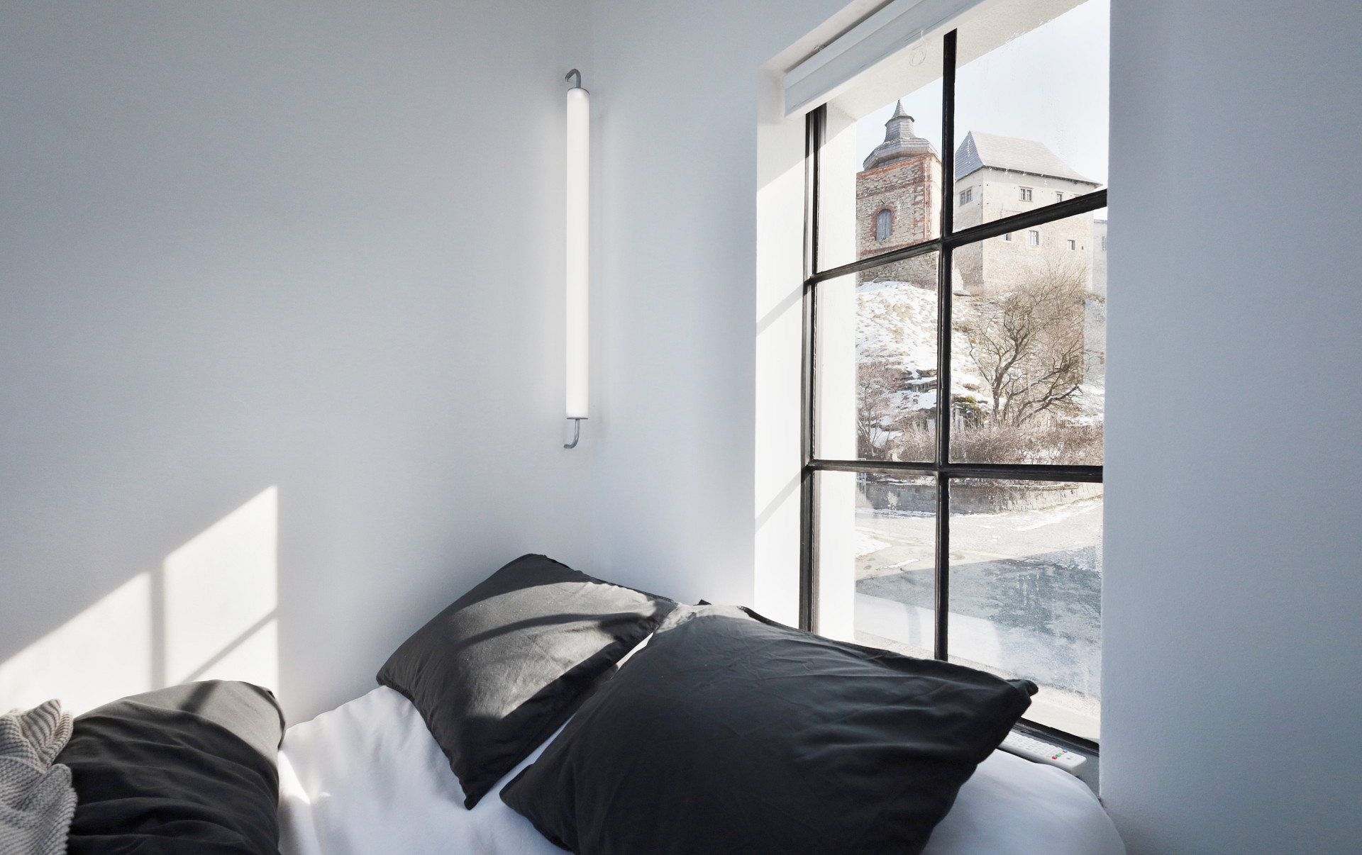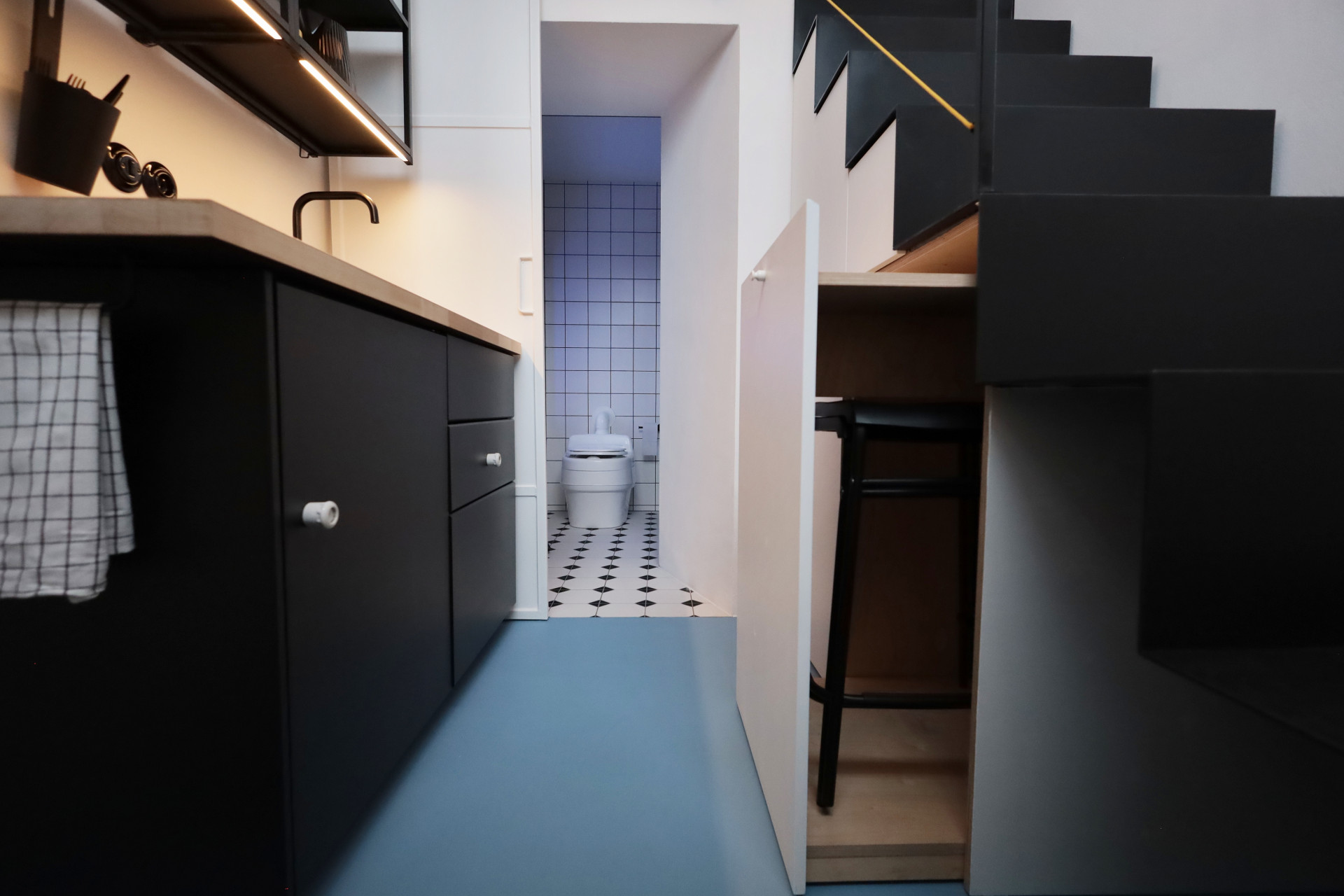 Umístit koupelnu, ložnici, kuchyň a terasu do prostoru o rozměrech pouhých 10 metrů čtverečních bylo velkou výzvou. Ale povedlo se. Interiér ožil novým duchem a působivá instalace různých typů světel vytváří na malém intimním prostoru elektrizující náboj, odkazující k původní funkci. To vše s romantickým výhledem do krajiny Vysočiny a na blízký hrad Lipnice nad Sázavou. Nedaleko Trafajdy se navíc nachází hospoda U České koruny, kam chodil na pivo sám Jaroslav Hašek, genius loci místa se tak zdá být opravdu silný.