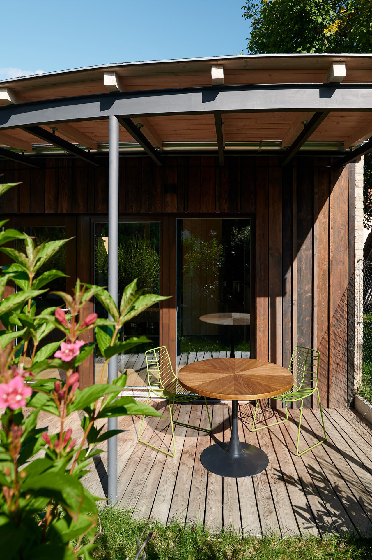 Například přístavek pro další generaci k domu rodičů navrhovali architekti Šárka a Marek Sodomkovi v Letech u Dobřichovic. Jedná se o dřevostavbu dost nestandardního „hruškového“ tvaru, aby se uspořilo co nejvíce místa z nevelkého pozemku. Výsledkem je efektní stavba uvnitř i navenek, která přiznává svou atypickou dřevěnou konstrukci. Ovšem přeci jen nejde o vícegenerační bydlení v pravém slova smyslu, rodina přístavbu využívá jako chalupu.