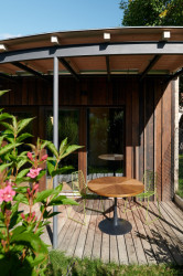 Psali jsme také o pompéznějších realizacích. Rodinný dům v pražských Dejvicích to splňuje jak architekturou, tak samotným umístěním: vznikl na střeše bývalého obchodního střediska ze sedmdesátých let, dnes menší administrativní budovy. A na střeše se našlo místo dokonce i na zahradu.