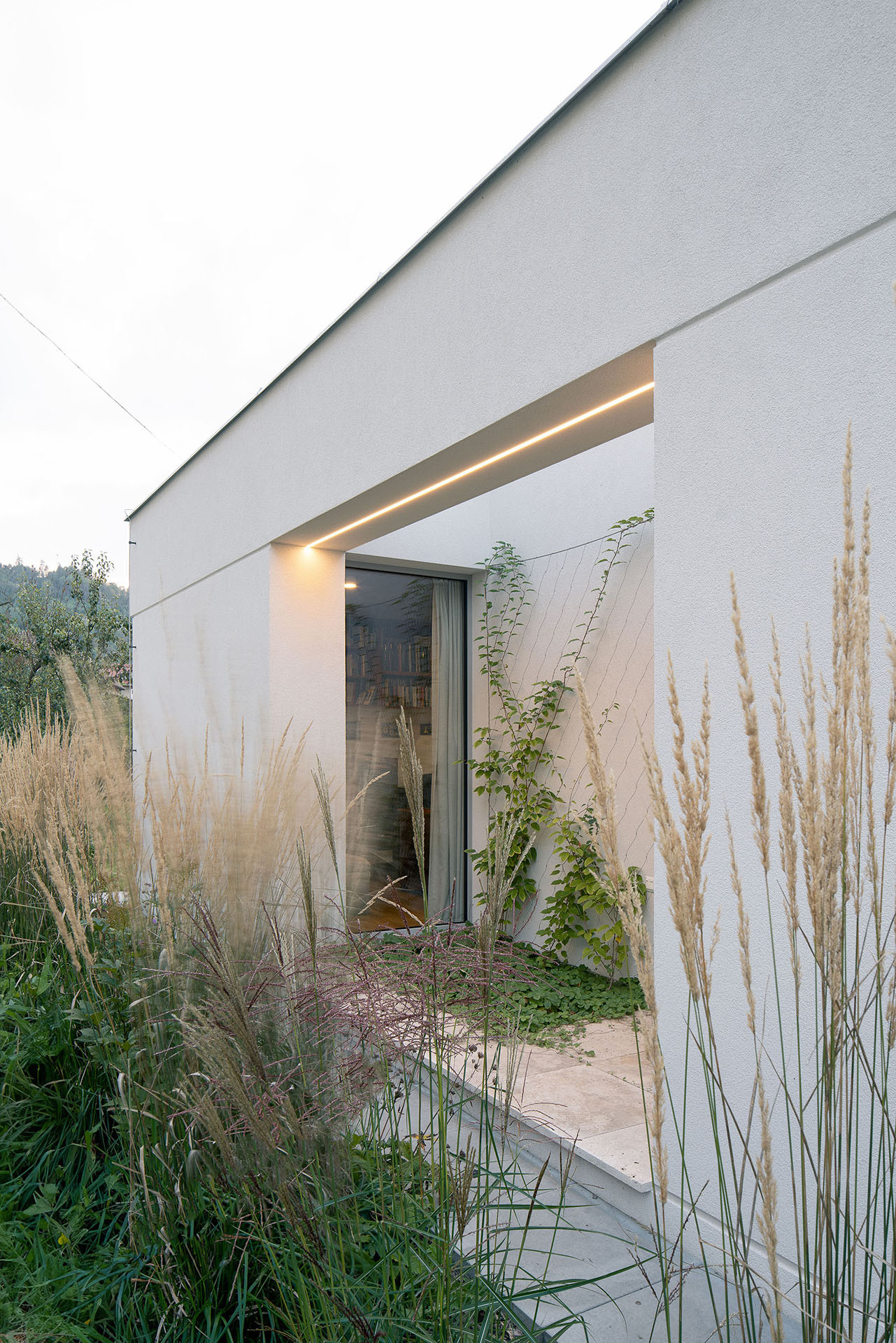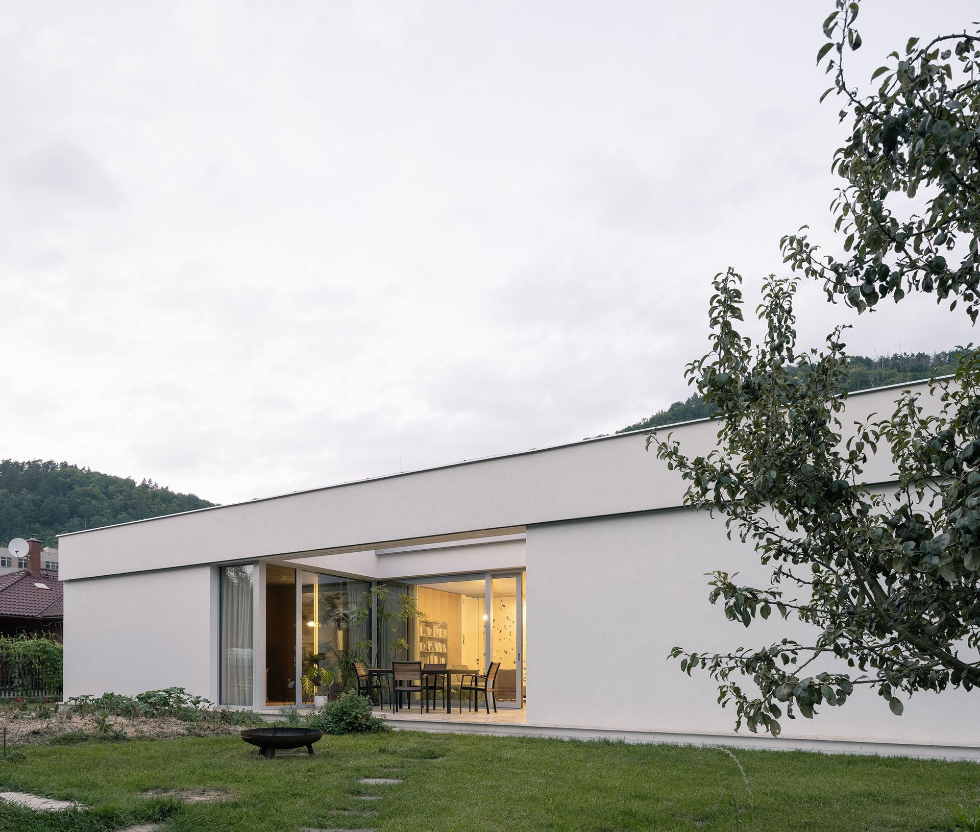 Nový dům vznikl na vesnici nedaleko hradu Pernštejn. Má čtyři atria, příroda vstupuje do každé místnosti.