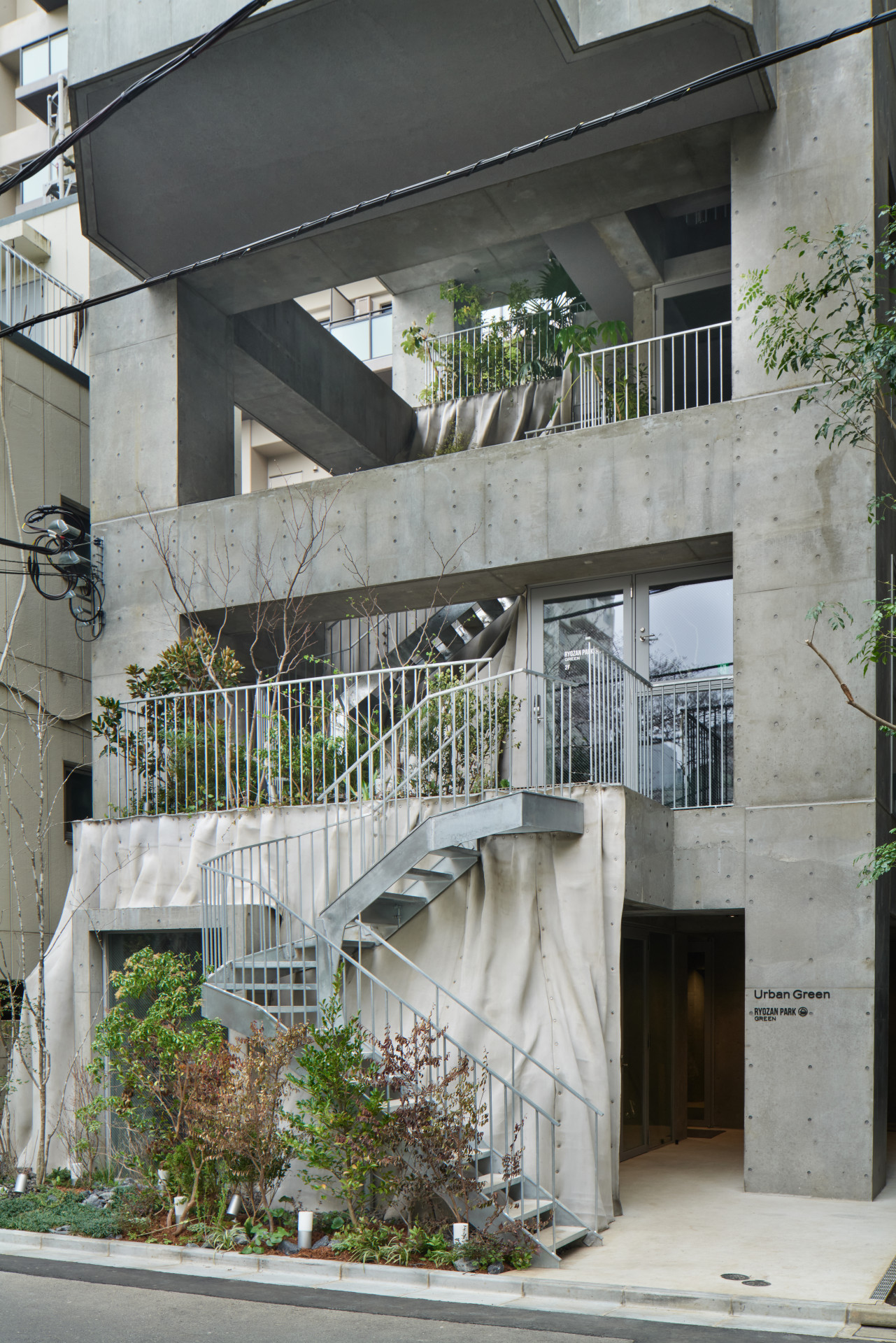 Na tuto novou situaci reaguje také právě dokončený projekt kolektivního domu Ryozan Park Green. Vychází z potřeb několika mladých rodin, které se společně chtějí starat o děti, často pracují doma, a tak potřebují prostor na jednání s klienty. Zároveň se zajímají o místní komunitu, do které se chystají aktivně přispívat.