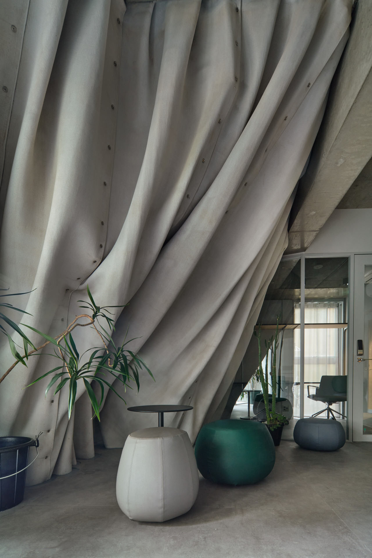 Uvnitř jsou však budovy zrekonstruované a pohodlně moderní. A také tady najdeme spoustu zeleně a trochu excentrického designu od designéra Jomonjiho Masy. Ve vyšších patrech jsou byty, v nižších najdeme sdílenou kuchyni, pracovny a studovny, v suterénu tělocvičnu a hudební zkušebnu.