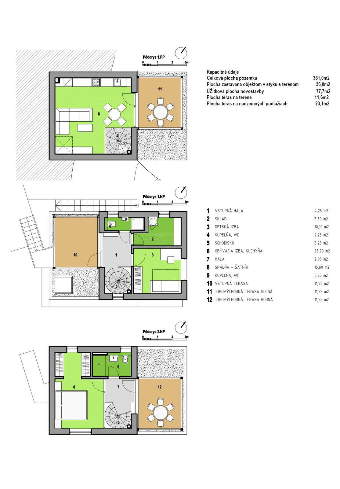 půdorysy domu B, obydlí v objetí golfu, 3x3,