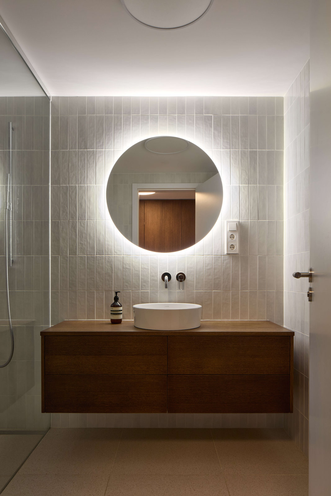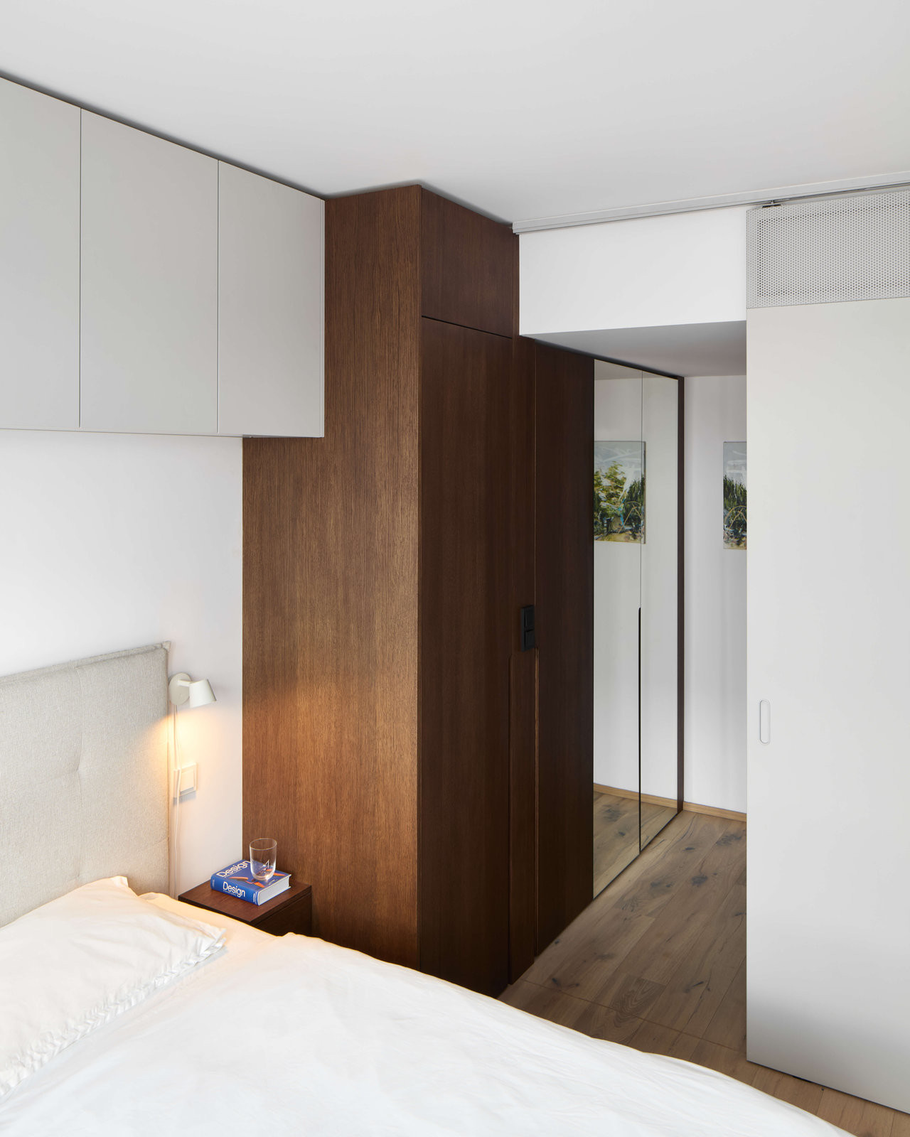 Interiér od PANIKHORN poskytuje na relativně malé ploše všechno, co jeho dva obyvatelé potřebují, a navíc v praktickém řešení a uspořádání. Síla návrhu spočívá v řemeslné přesnosti, materiálové poctivosti a tvarové střídmosti. Jak sami architekti říkají: „Vyhýbáme se prvoplánovým řešením – klíčová je funkčnost a přirozená estetika.“ Výsledkem je nadčasový byt, který působí větší, než ve skutečnosti je.