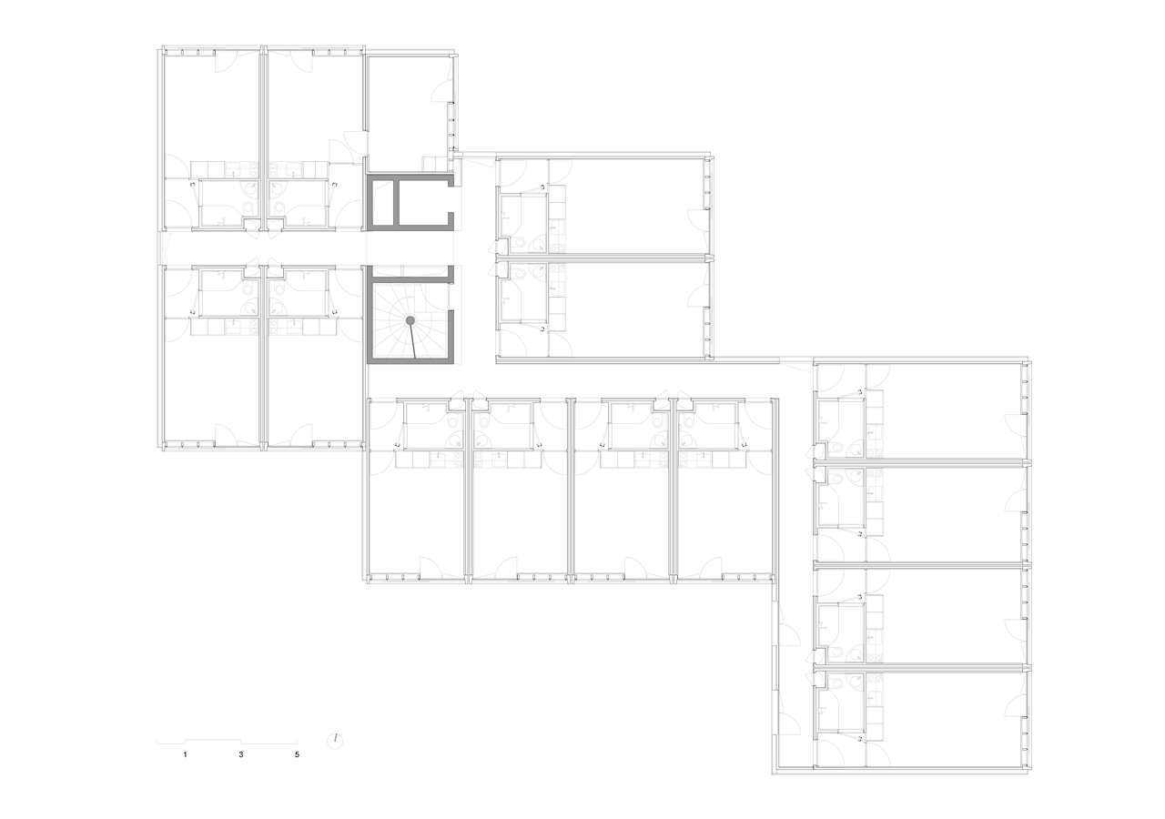 PPA Architectures, 50 Modular Timber Apartments, půdorys běžného patra - foto