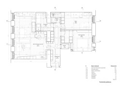 Byt se nachází v činžovním domě v Pernerově ulici, typickém pro pražský Karlín. Původní dispozice z konce 19. století zde ustoupila otevřenějšímu řešení, v němž se kuchyň, obývací prostor a pracovní zóna propojují bez ostrých přechodů a pevných hranic. Jednotlivé funkce nejsou oddělené zdmi, ale rytmem, světlem a měkkými přechody.