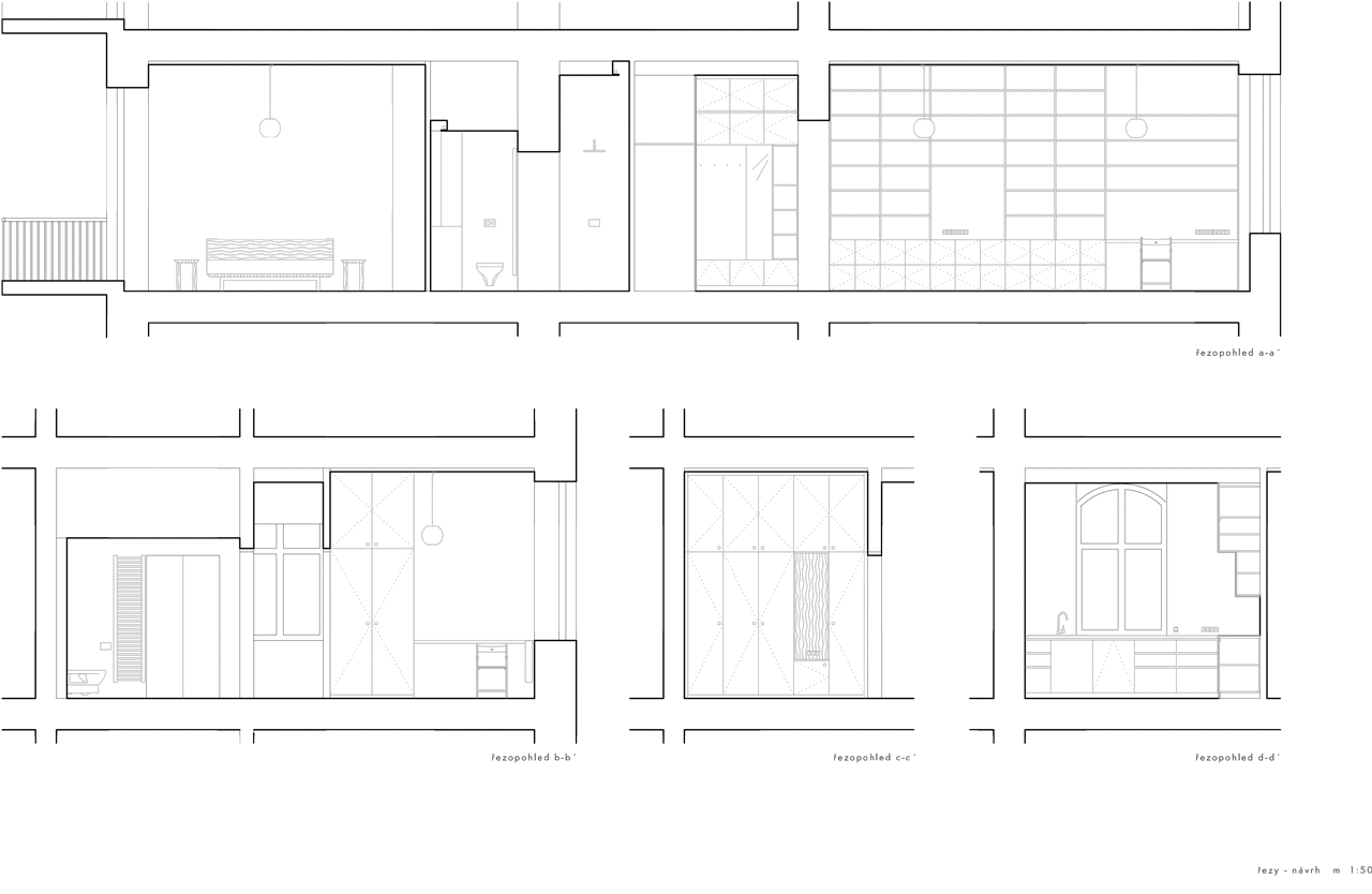 henkai architekti, byt pana doktora v Opavě, řezy navrženého stavu M 1:50 - foto