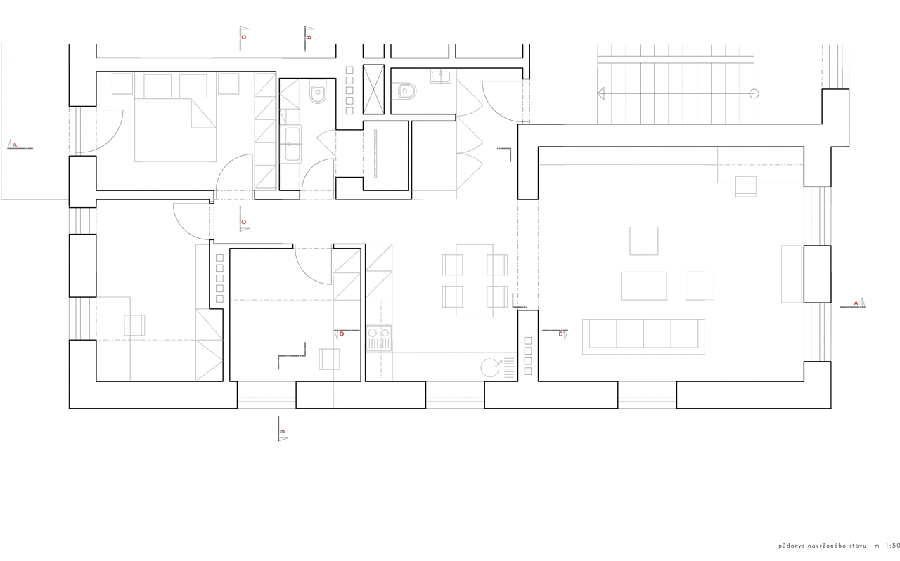 henkai architekti, byt pana doktora v Opavě, půdorys navrženého stavu M 1:50 - foto