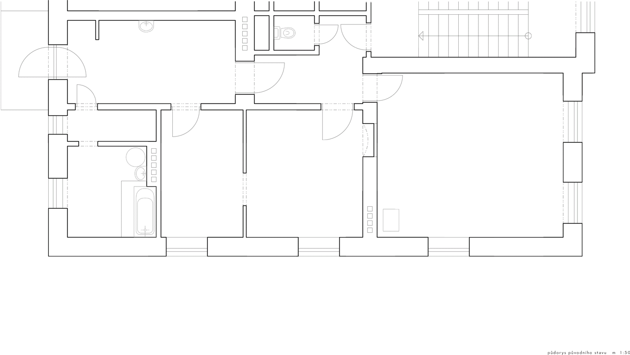 henkai architekti, byt pana doktora v Opavě, půdorys původního stavu M 1:50 - foto
