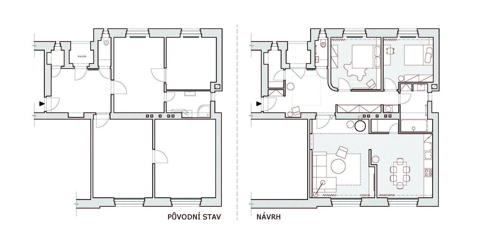 Interíér bytu Jičín, půdorys, Veronika Pánková,