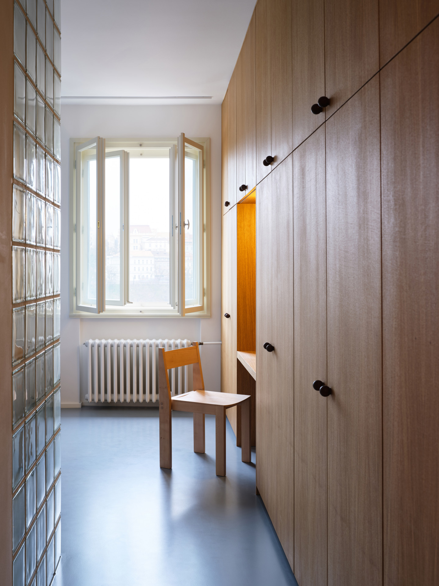 Před druhou světovou válkou měly pražské rodiny často ještě služku. Teď z služebního pokojíku vznikla klidná ložnice pro rodiče. Co ještě udělal s dispozicí prvorepublikového bytu architekt Prokop Hartl?