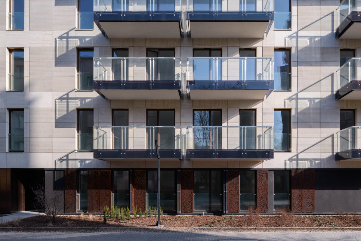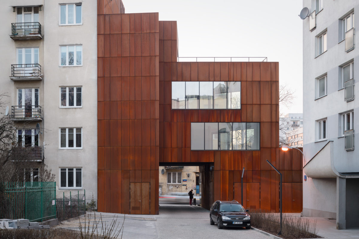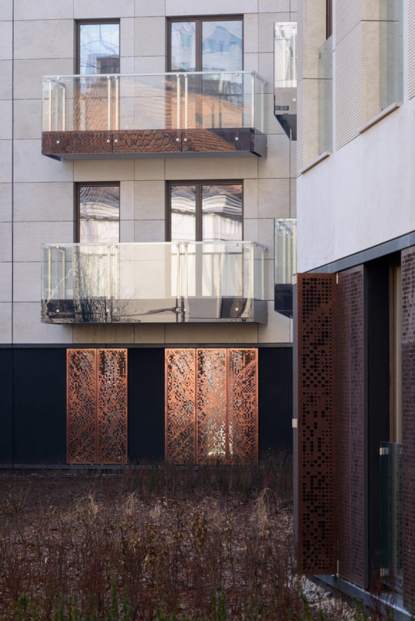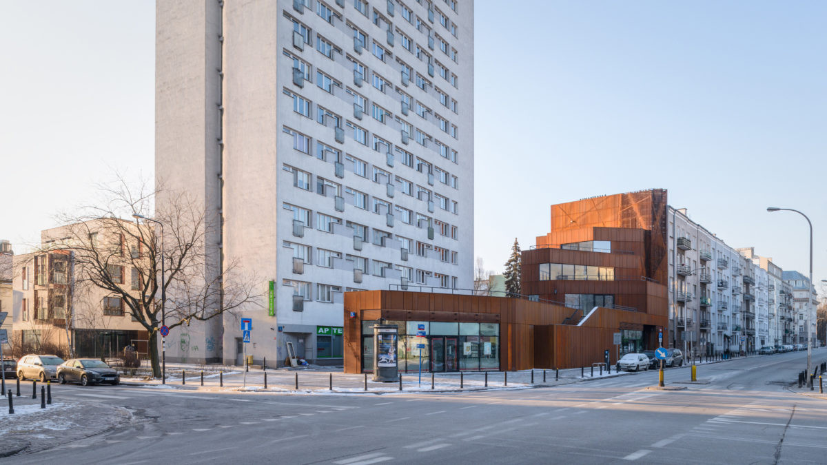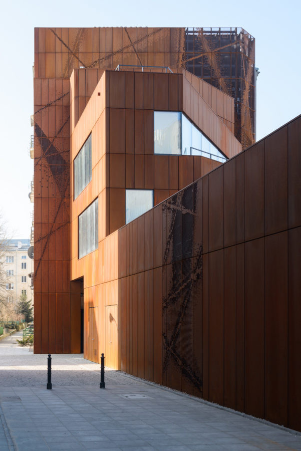 Bytový soubor v centru Varšavy zvýrazňuje obklad z mědi a cortenu