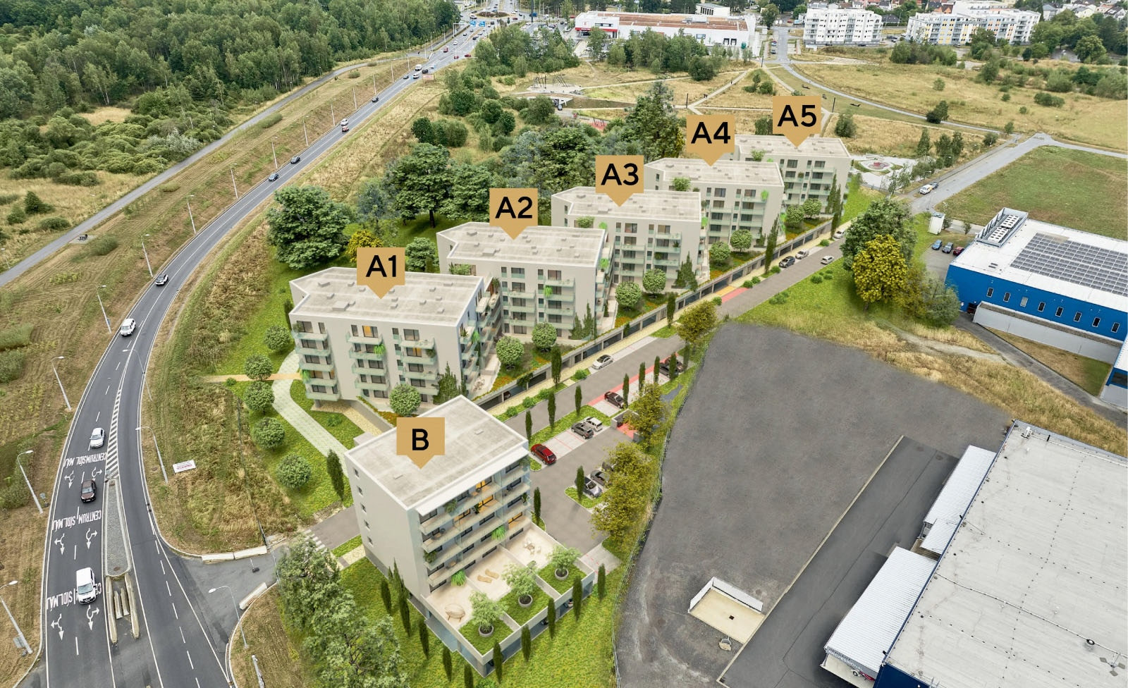 Výstavba byla zahájena v srpnu 2022 na pozemku o rozloze 14 000 m², přičemž zastavěná plocha činí 10 555 m². Na místě vzniknou jak menší jednotky o dispozicích 1+kk a 2+kk, tak i větší byty 3+kk a 4+kk. Všechny budou navíc vybavené balkony a jejich obyvatelé získají přístup ke krytému a podzemnímu parkování, kolárnám a sklepům.