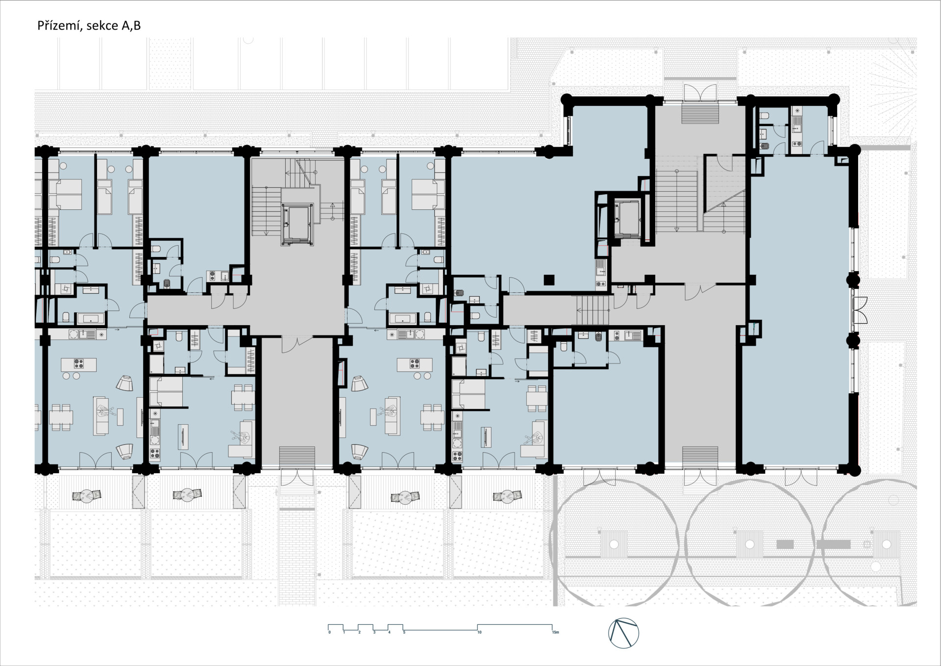 - Užitná plocha – společné prostory, garáže, sklepy: 6 767 m2