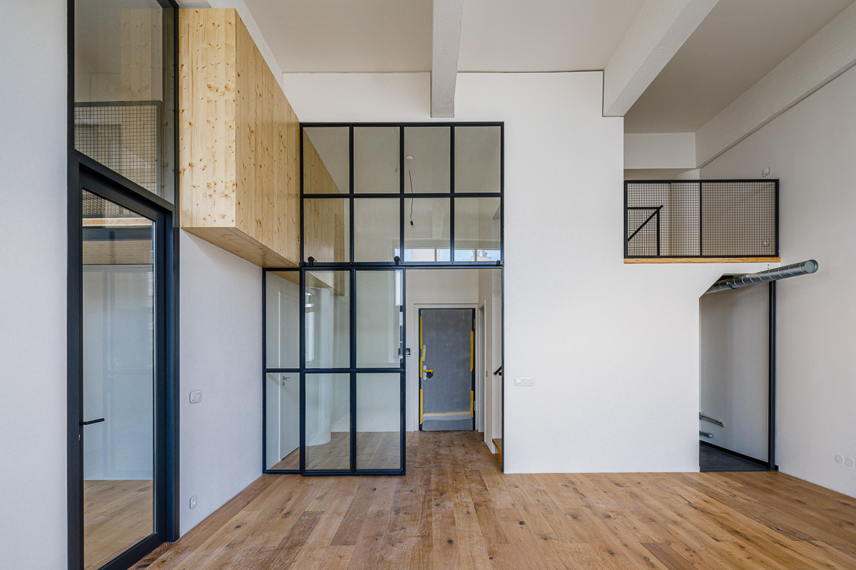 Místo výrobních místností se dnes v bývalé továrně nacházejí nové byty. Ve většině případů se jedná o lofty s novými vestavěnými patry a galeriemi. V jejich zařízení se ke slovu dostaly především přírodní materiály v kombinaci s „industriálními stopami“ – ocelovými konstrukcemi nebo skleněnými příčkami. „Pro vnitřní příčky a dveře je použit systém Reynaers CS 59 PA zasklený jednoduchým bezpečnostním sklem,“ doplňuje Tomáš Pevný.