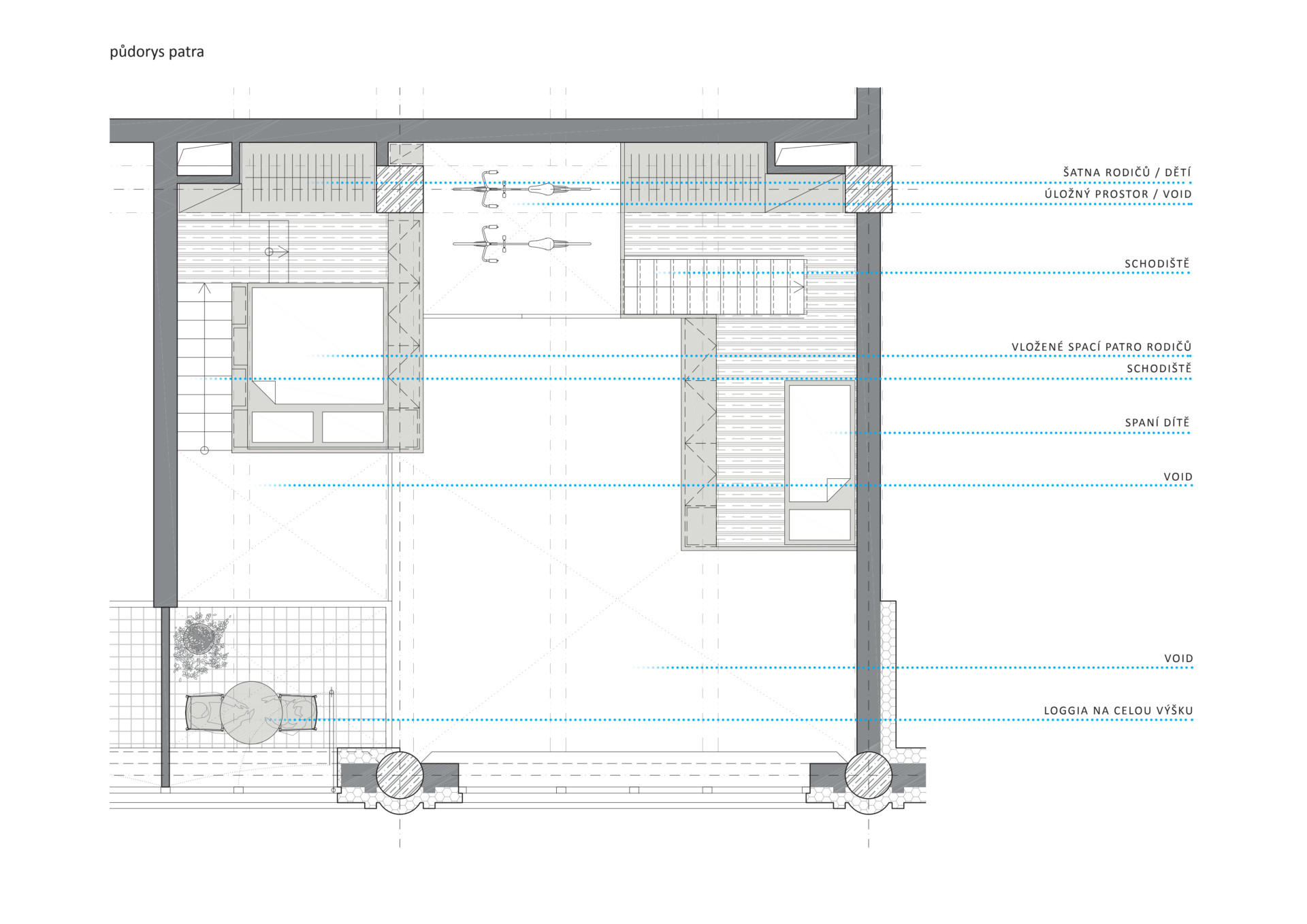 Součástí bytů v nižších podlažích jsou také lodžie. Při pohledu na budovu jsou však sotva patrné – architekti je záměrně skryli za původní plášť, aby nenarušili její původní výraz. „Ve snaze docílit zachování původního vzhledu jsme lodžie zapustili do druhého plánu fasády, přičemž okenní výplň v prvním plánu fasády tvoří ‚paraván‘,“ dodávají.