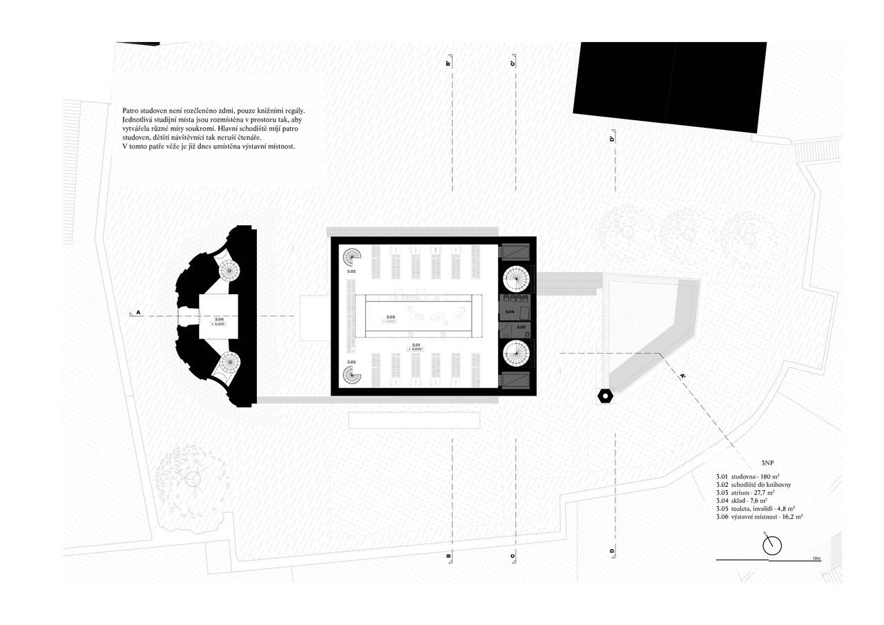Jiří Lukáš, Centrum Jablonného v Podještědí, kostel/knihovna, půdorys 3. NP – foto