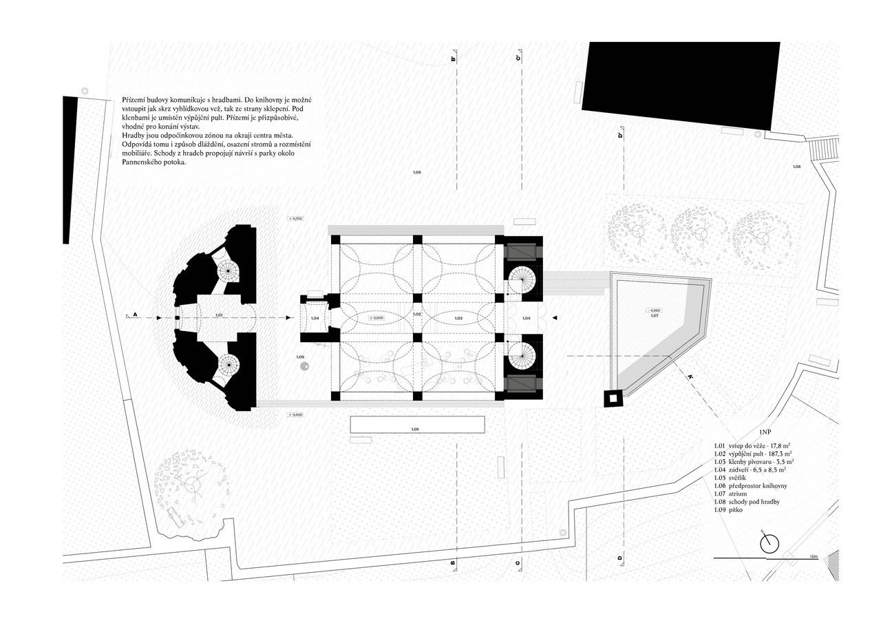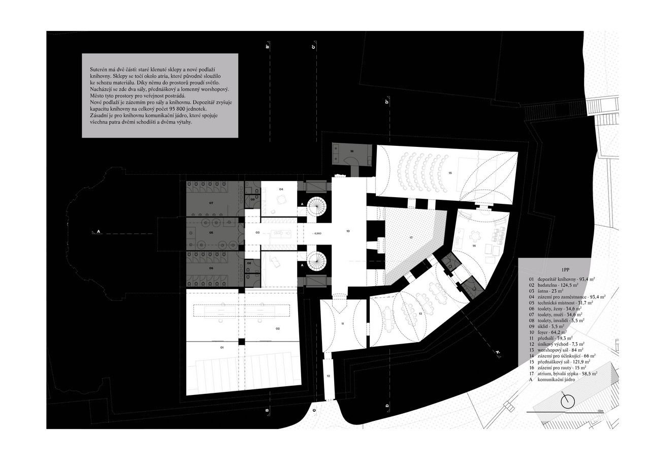 Jiří Lukáš, Centrum Jablonného v Podještědí, kostel/knihovna, půdorys 1. PP – foto