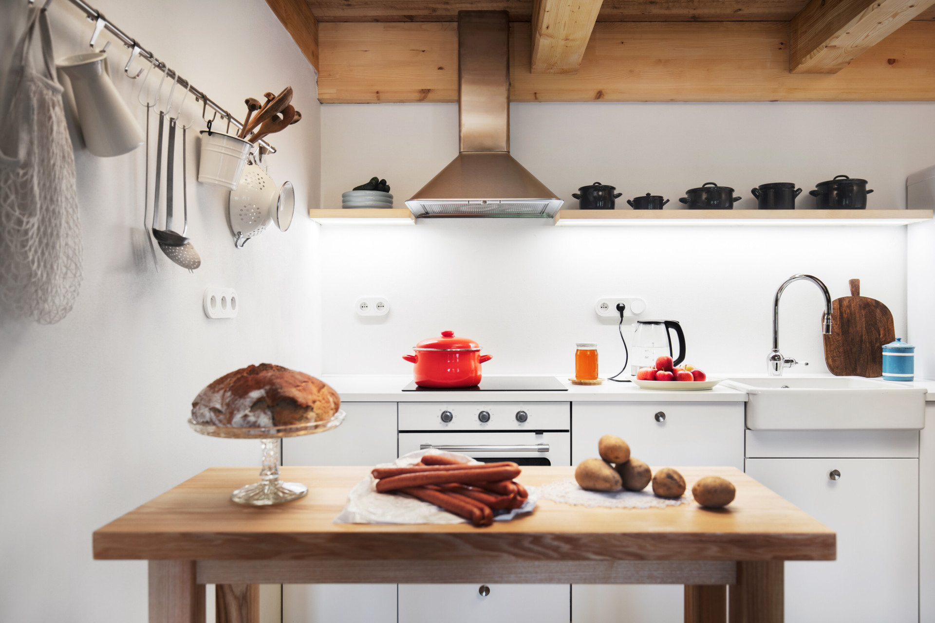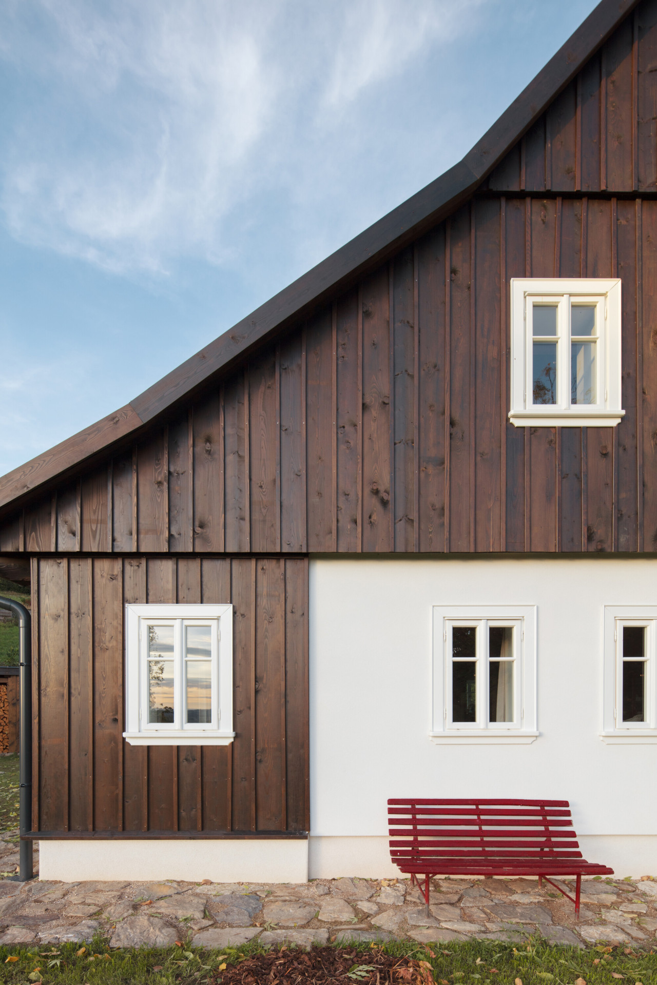 Zároveň se architekti nebáli inovací. Vyřešili například obvyklý problém starých chalup, nesnadný přístup na zahradu, a přidali francouzské okno. V přízemí je kromě té hlavní ještě jedna kuchyně, dům má také dvě koupelny a je připravený na pobyt domácích, i na pronajímání nemovitosti hostům.