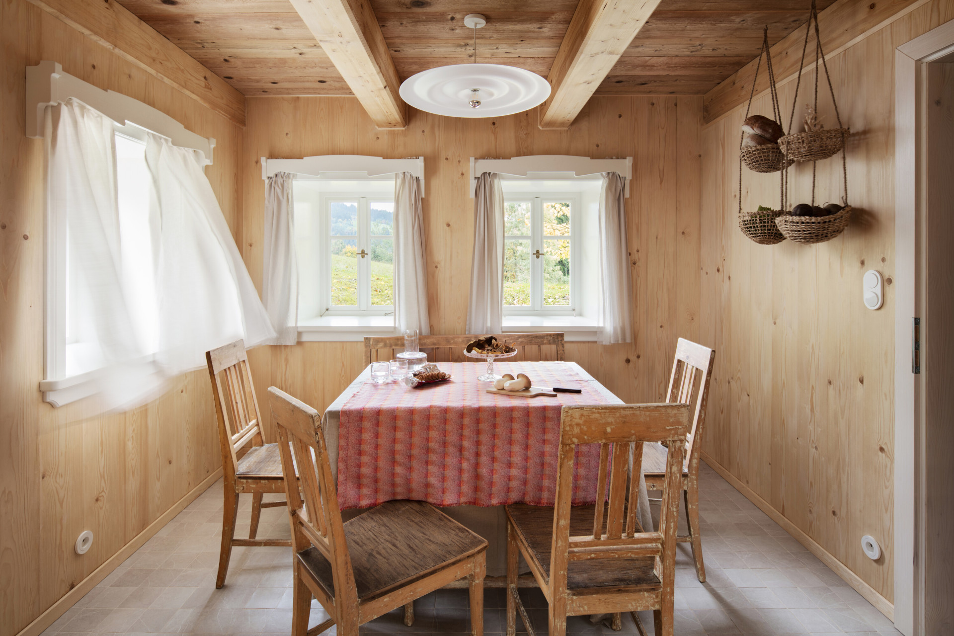 Doplnili ale i vysloveně současný design: židle od dánské značky Frama, či svítidla švédského výrobce Wästberg. Interiér zdobí ilustrace výtvarníků Tomski&Polanski tematicky zpracovávající právě prostředí Jizerských hor.