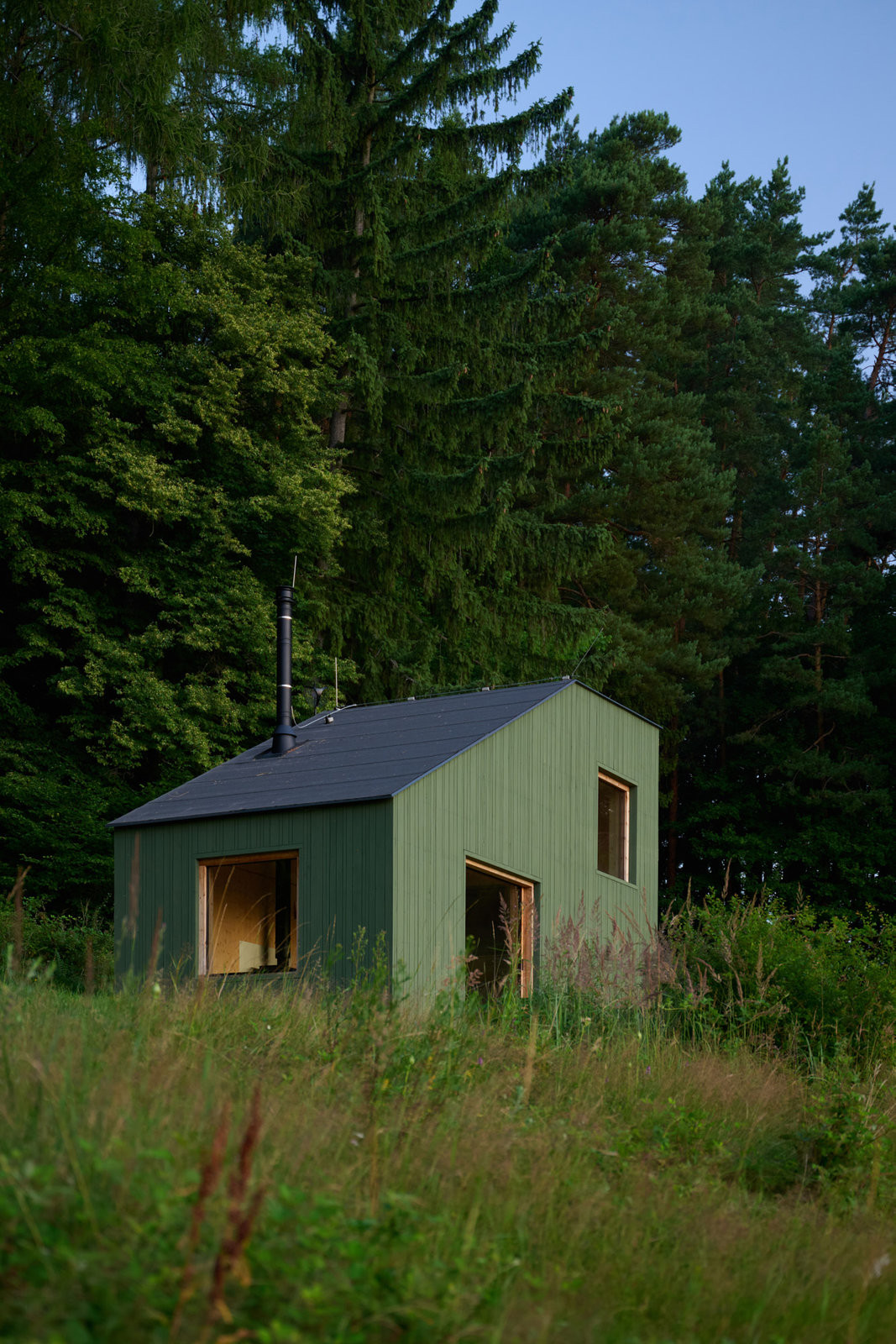 „Osobitý design se tu potkává s ryzí, surovou přírodou,“ tak popisují chatu její majitelé, manželé Malí. Sauna stojí hned vedle a jinak jsou tu už jenom stromy a nebe.