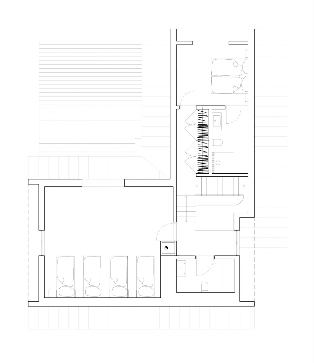 Ložnice a dětský pokoj jsou situovány pod střechu. Znamená to pro ně, že pokoje obestupují zkosené stěny, mají ale taky speciální okna. Dětský pokoj pásové ve vikýři a ložnice kulaté, v němž se dá posedět s knihou. Zevnitř působí útulně a zvnějšku přitáhne pozornost. To ostatně platí pro celou chatu, ve které bylo potřeba dobře vyvážit staré a nové.