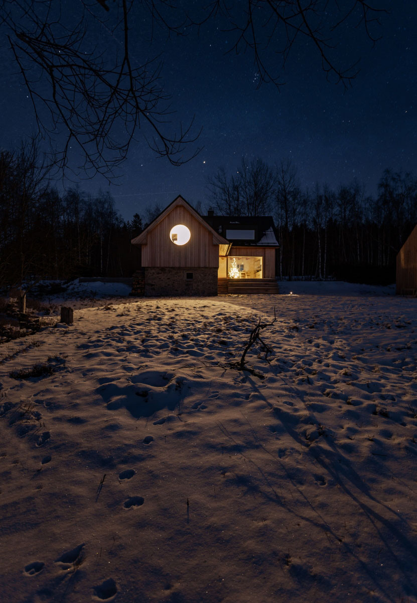 Před přestavbou se chalupa okolí uzavírala. Na místě totiž hodně fouká a dovnitř zalézala zima. Teď to ale vyřešila izolace, stavba dostala prosklenou stěnu, prostoupilo ji světlo a lépe se vytápí.