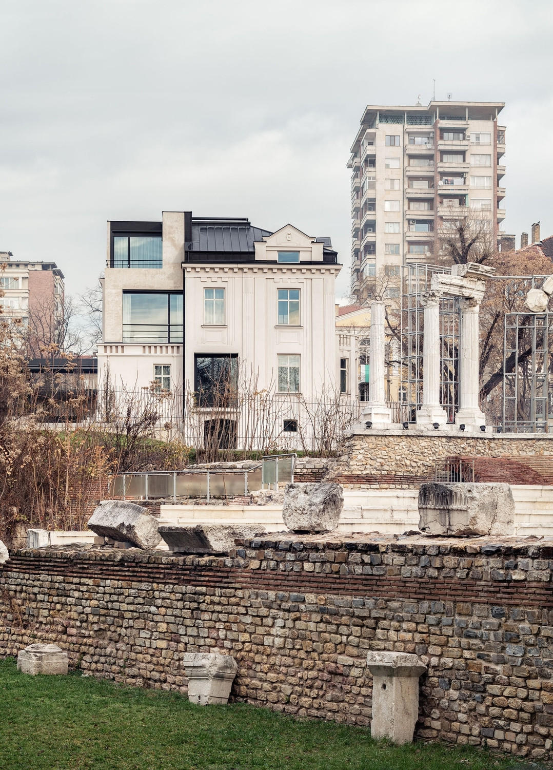 Bulharské studio I/O architects zrekonstruovalo skomírající ruinu ve starověkém městě Stara Zagora a navrátilo tak stavbě její původní eleganci. Původní hmotu doplnili architekti o jednoduchou přístavbu z bílého betonu, která doplňuje původní vzhled domu. V interiéru architekti uplatnili hru několika výrazných materiálů, jako jsou beton, původní režné zdivo nebo například černý kov.