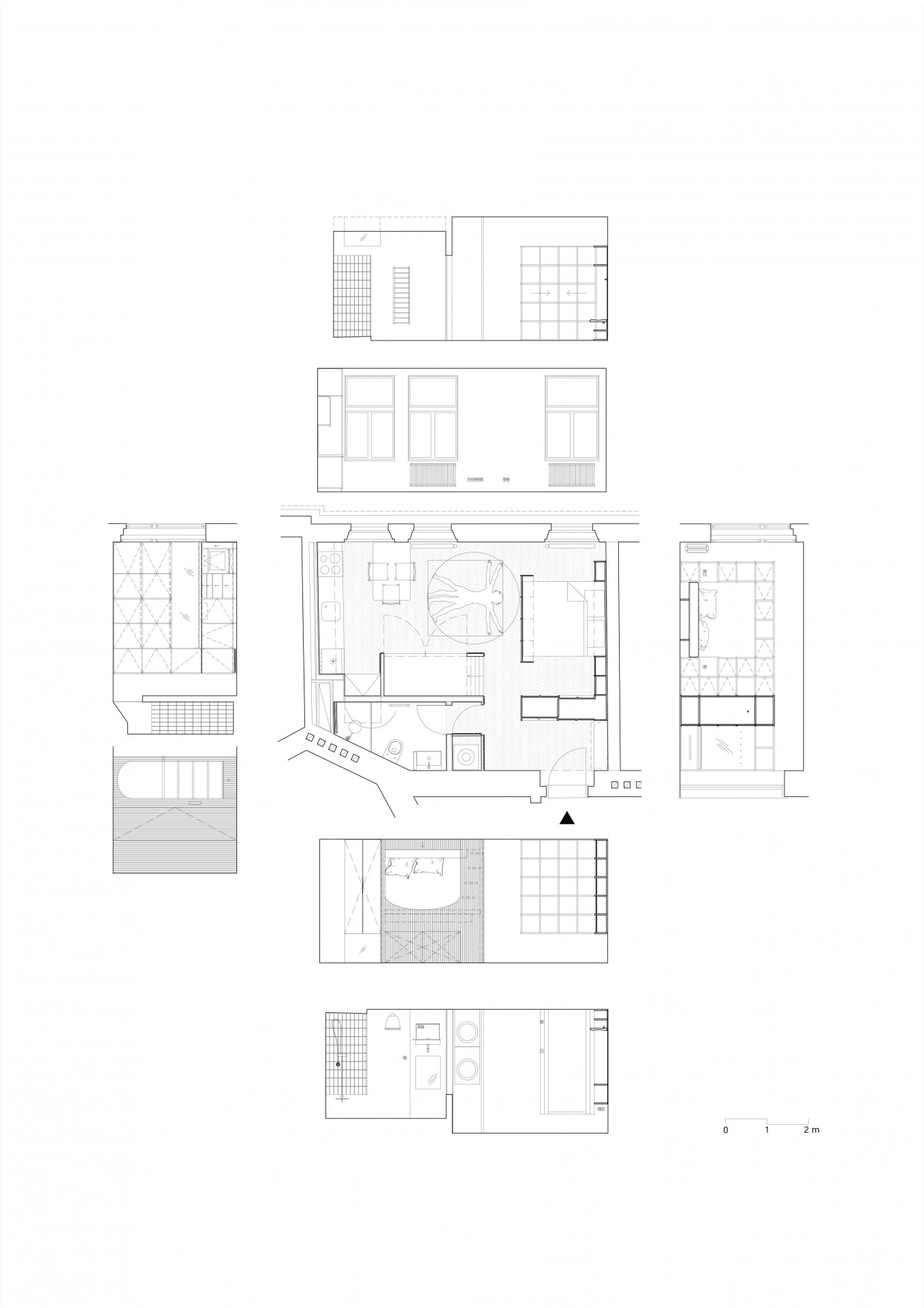 Ačkoliv známé znojemské studio projektuje nejčastěji v menších městech a vesnicích na Moravě, nedávno dokončilo i realizaci v Praze. Nezvykle zařízená garsonka o 37 metrech čtverečních se nachází v bytovém domě na Žižkově, který vznikl jako developerský projekt. Zcela původně měl na takto malé ploše vzniknout byt 2+kk. Architekti ale ještě stihli zasáhnout do procesu výstavby a dispozici tak změnit. V bytě nezůstaly žádné příčky, jde o jeden prostor, který dělí pouze na míru zhotovený nábytek. Z praktického hlediska zůstala oddělena pouze koupelna.