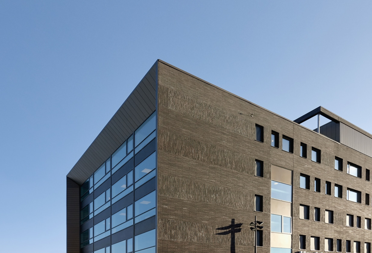 Ve východní části přístavní čtvrti dánského města Aalborg realizovali architekti z kanceláře Friis og Moltke kompaktní kancelářskou budovu s půdorysem ve tvaru E, která se svými třemi vystupujícími hřebeny otevírá směrem k vodě. Výrazným prvkem je fasáda z pálených cihel a skla, která budovu pevně ukotvila v prostředí přístavu.