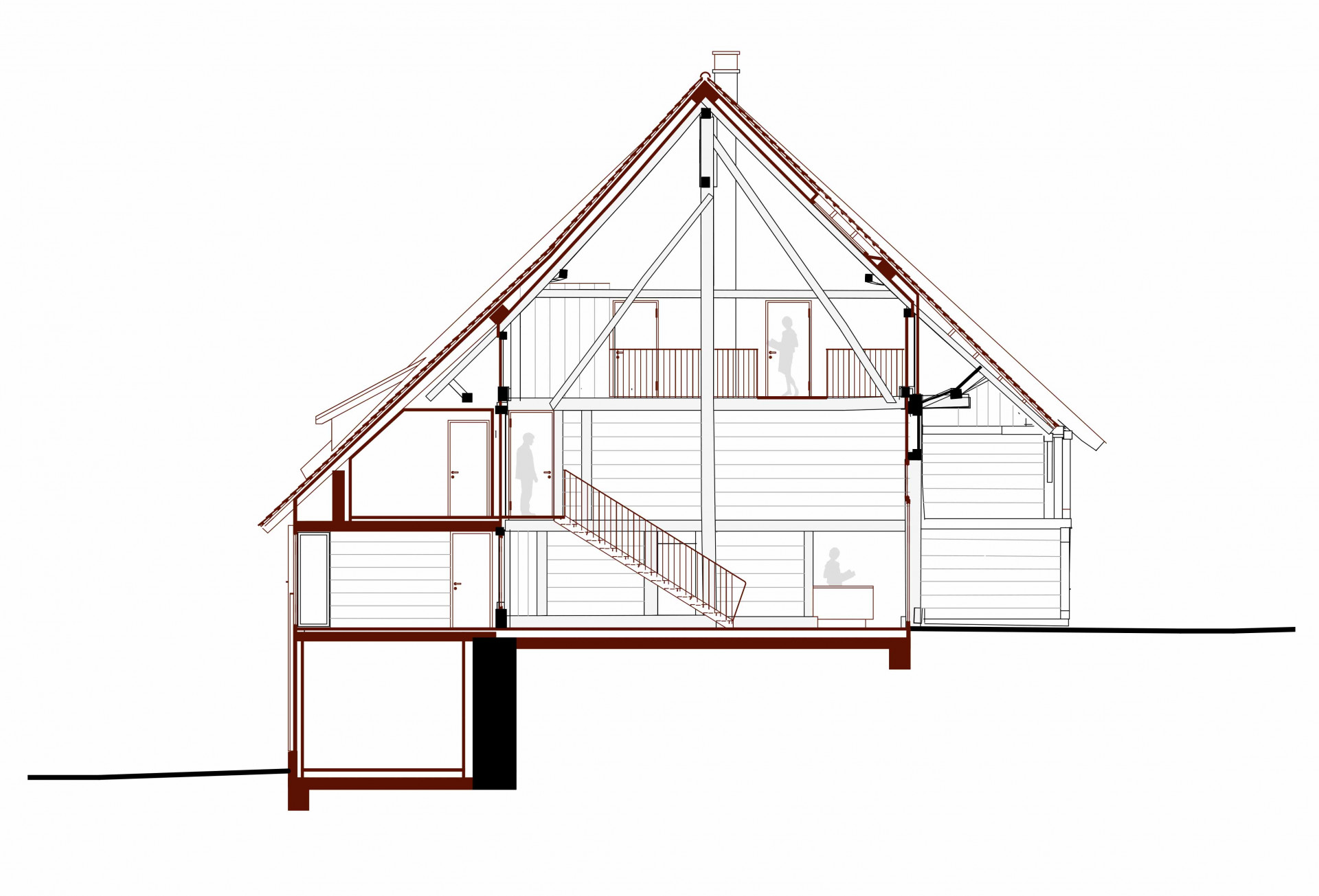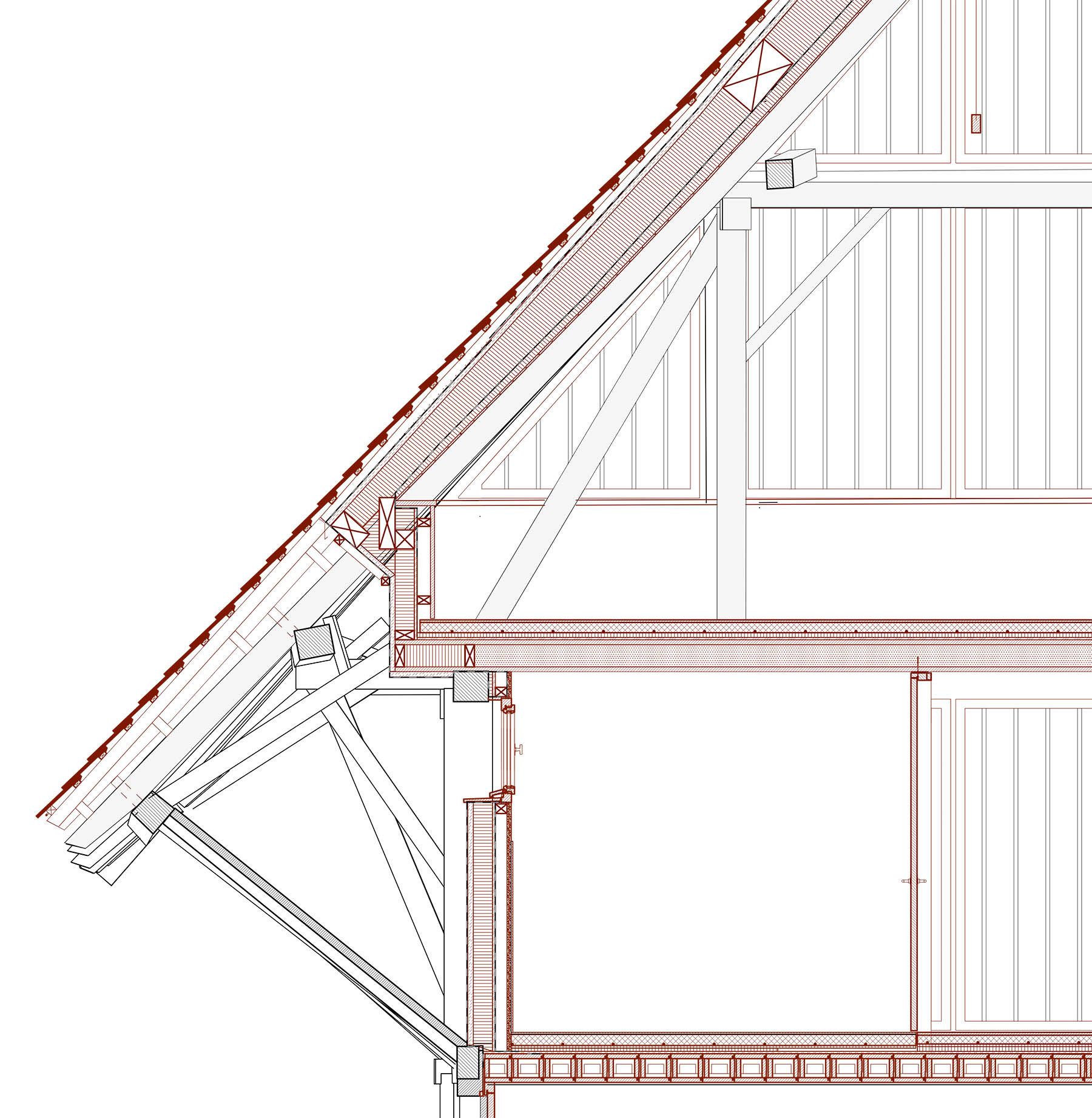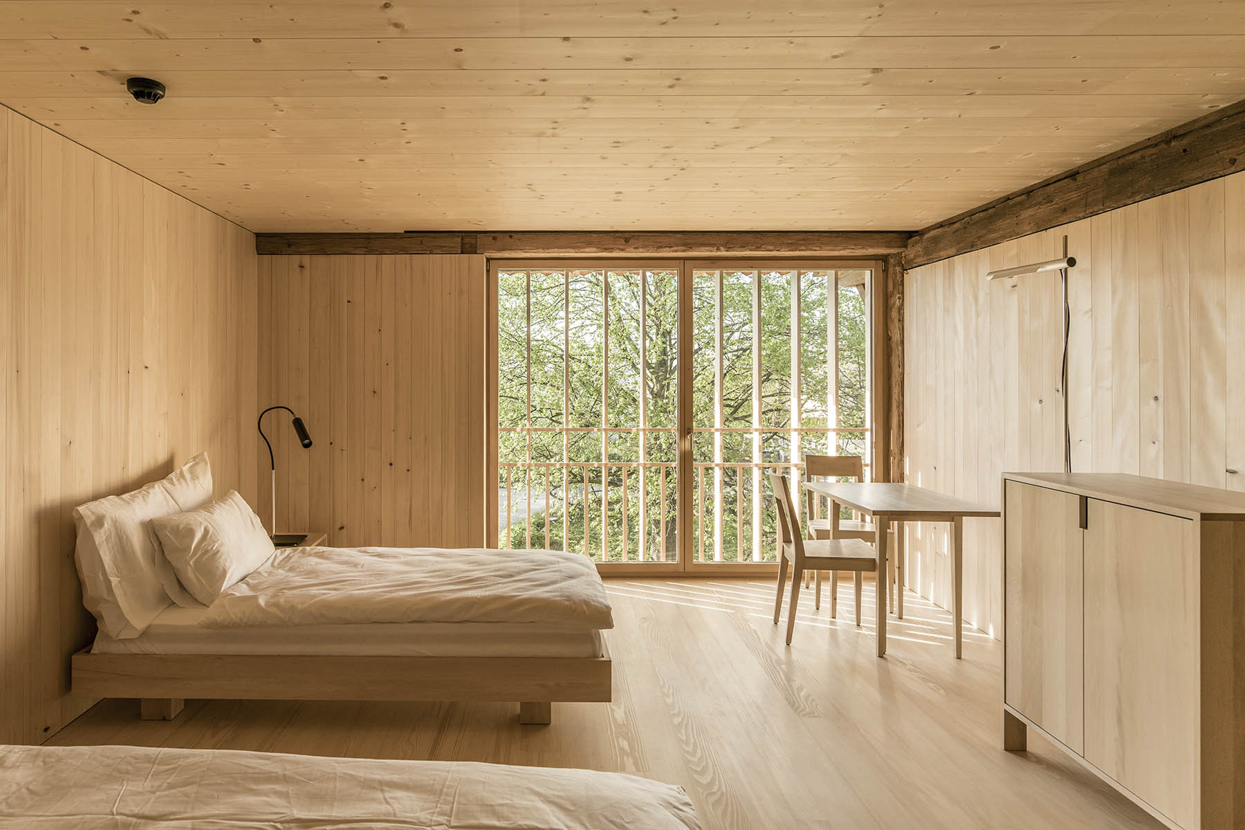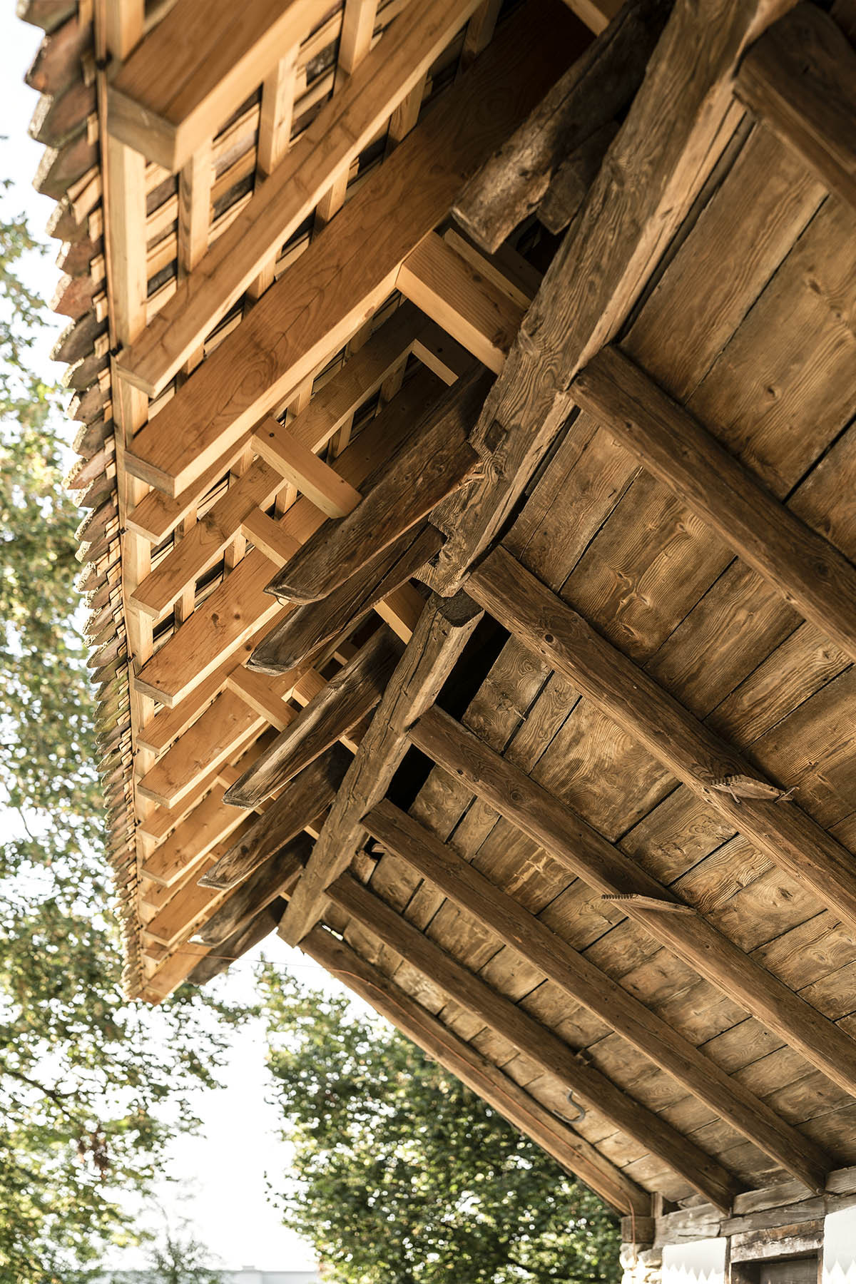 Vzhledem k cenné konstrukci hlavní budovy (tradiční pro kanton Aargan) se zvláštní pozornost věnovala práci se dřevem. Stabilní konstrukční části se očistily, vyspravily a doplnily novými prvky – smrkovým dřevem pro nosné konstrukce, jedlí pro vnitřní konstrukce, habr byl pak použit pro nový nábytek. Obecně platí, čím je dřevo tmavší, tím je starší.