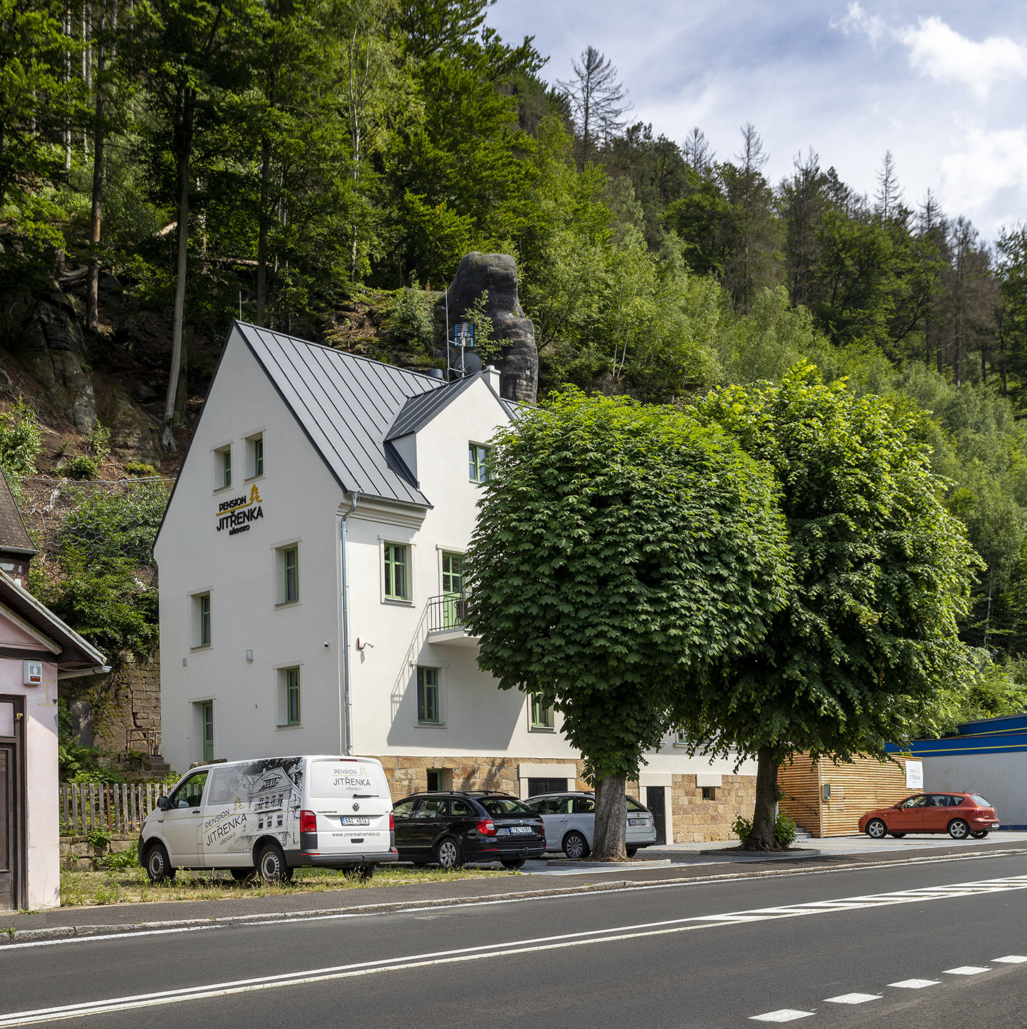 Malou obcí Hřensko v oblasti Českého Švýcarska prochází podél řeky Labe hlavní silnice směřující až k česko-německým hranicím. Pokud minete centrální část obce, narazíte po pravé straně toku na penzion Jitřenka, jednu z čerstvých realizací podle projektu architektonické dvojice Evy Pykové a Kateřiny Pohlové.