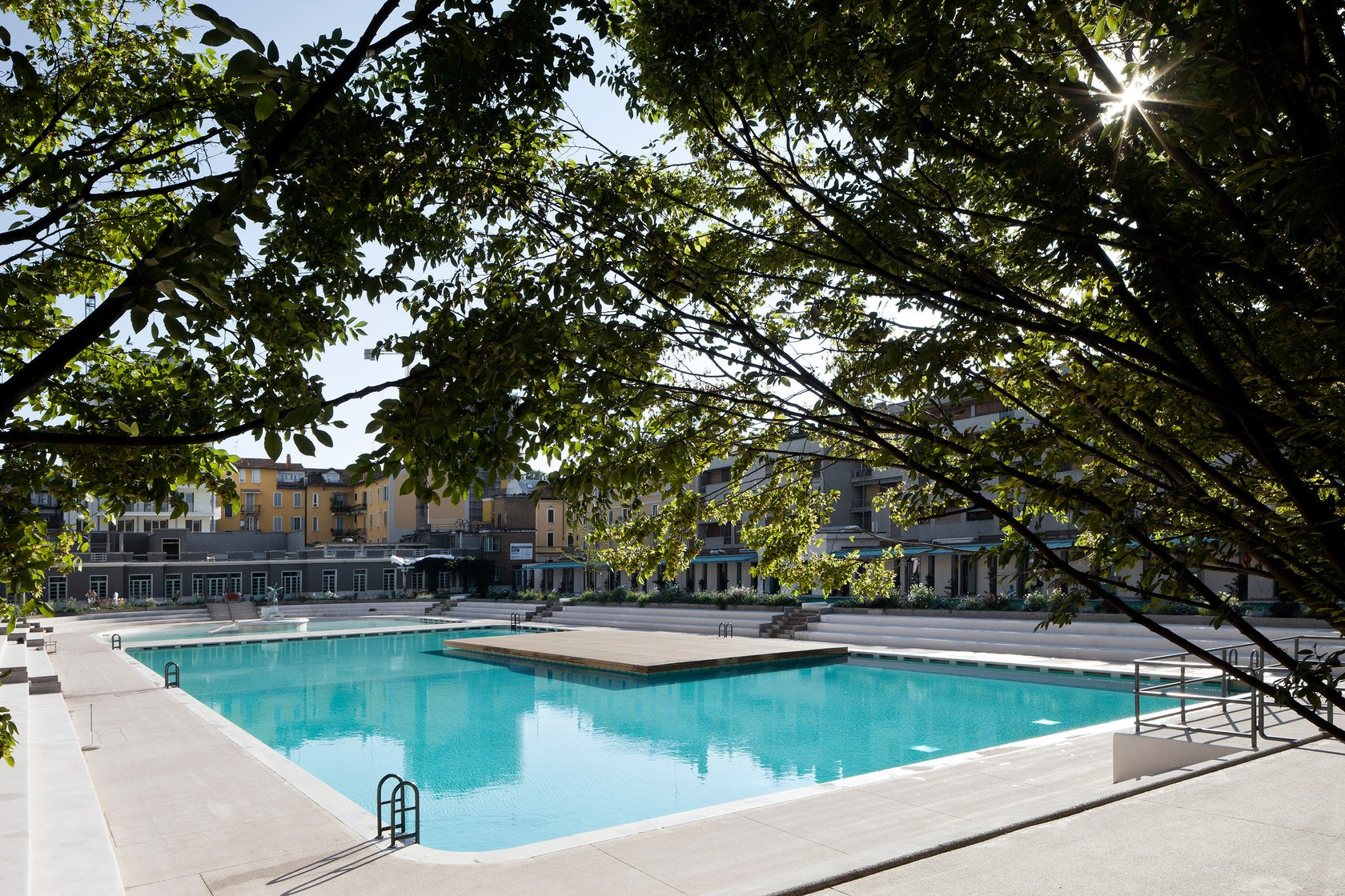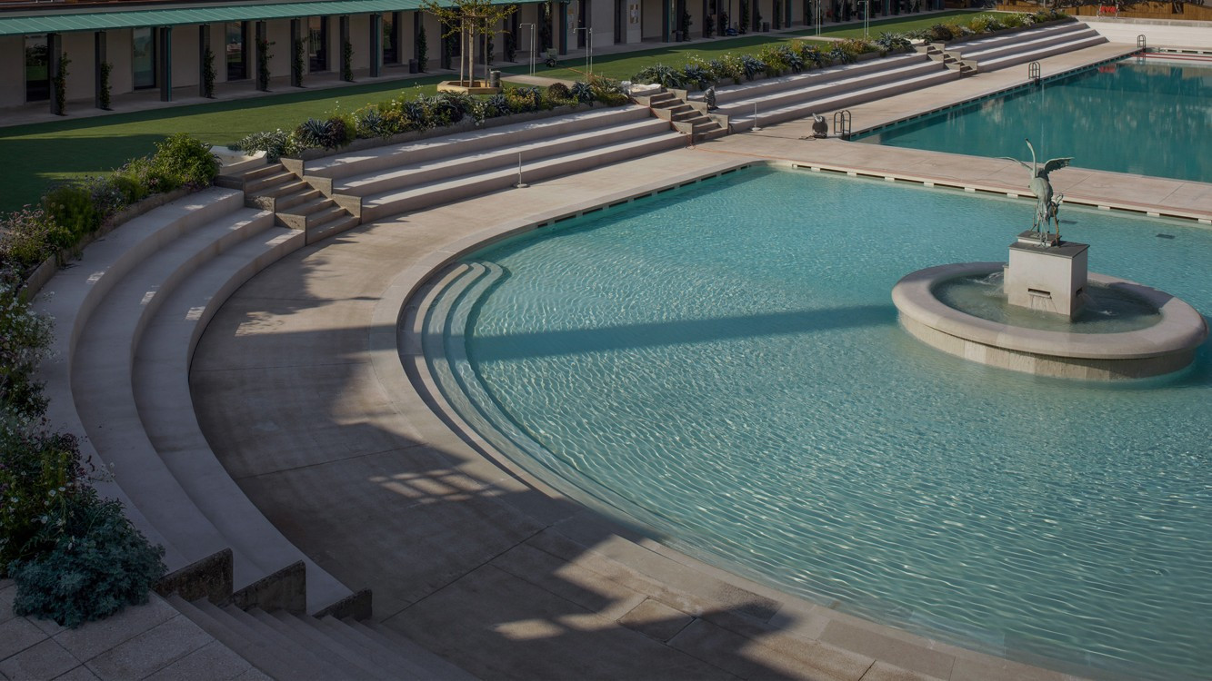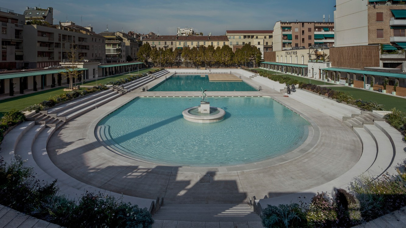 Průzračná voda omílá bílé břehy dvou vodních ploch a třpytí se v horkém italském slunci. Ještě před pár lety přitom modernistický komplex venkovních lázní v Miláně chátral. Areál z roku 1939 nedávno probudila k životu citlivá renovace italského designéra a architekta Michele De Lucchiho, který k projektu přistoupil s respektem k původní podobě lázní.