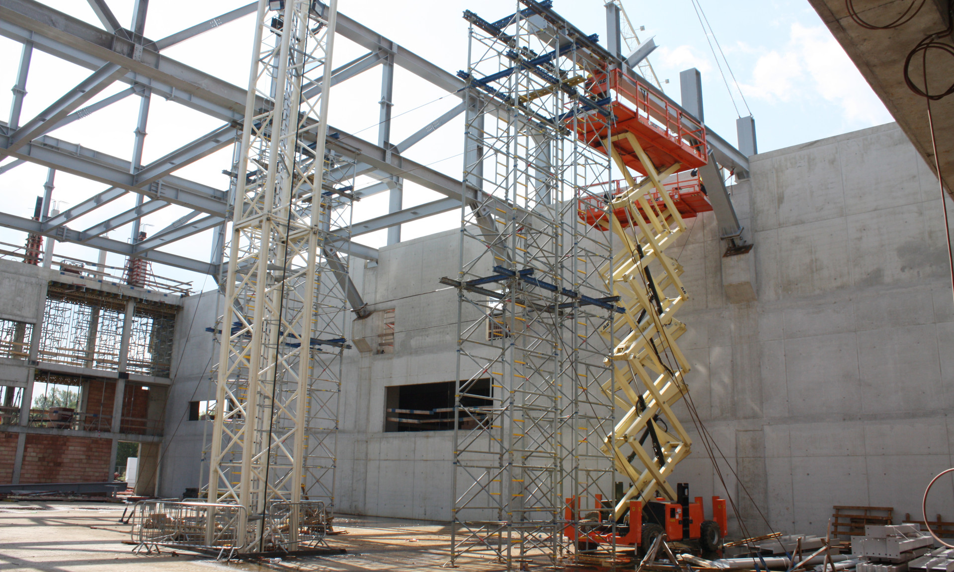 Na tom, aby se architektům podařilo zachovat charakteristický vzhled budov a jejich otevřenost, zároveň bylo dosaženo a vyhověno všem technickým požadavkům a normám, má nemalý podíl firma Aluprof a její široké portfolio produktů fasádních, okenních a dveřních systémů. Ta se podílela na obou projektech nejen jako dodavatel materiálů, technologií pro skleněné fasády a interiérové systémy, ale také projekčně úzkou spoluprací s architekty a projektanty. Na velkou část vnějšího pláště obou budov, který tvoří prosklené fasády, byly využity prvky z produktové rodiny fasád MB-SR50N. Z tohoto typu fasády je proveden také prosklený kaskádovitý světlík, který je zastíněn pevnými slunolamy MB-Sunprof. V interiéru zase našly uplatnění dělící příčky MB-45 a MB-80 Office.