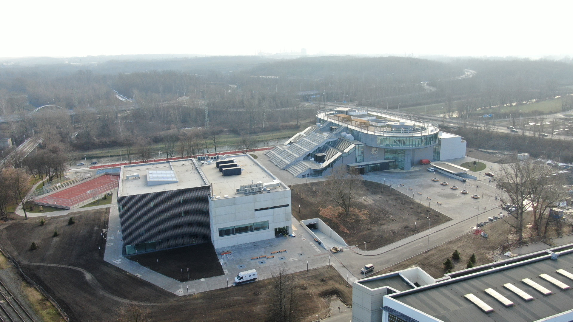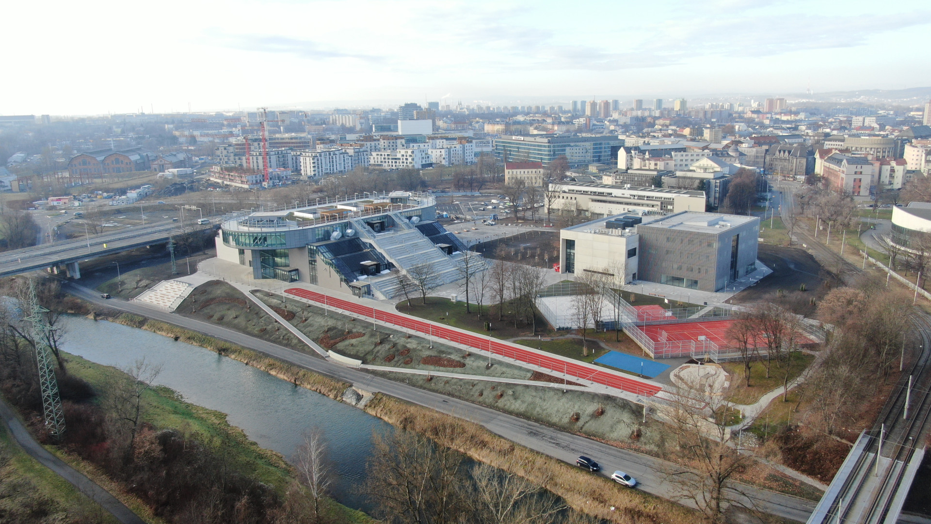 Krytá běžecká dráha z exteriéru vytváří novou dominantu území