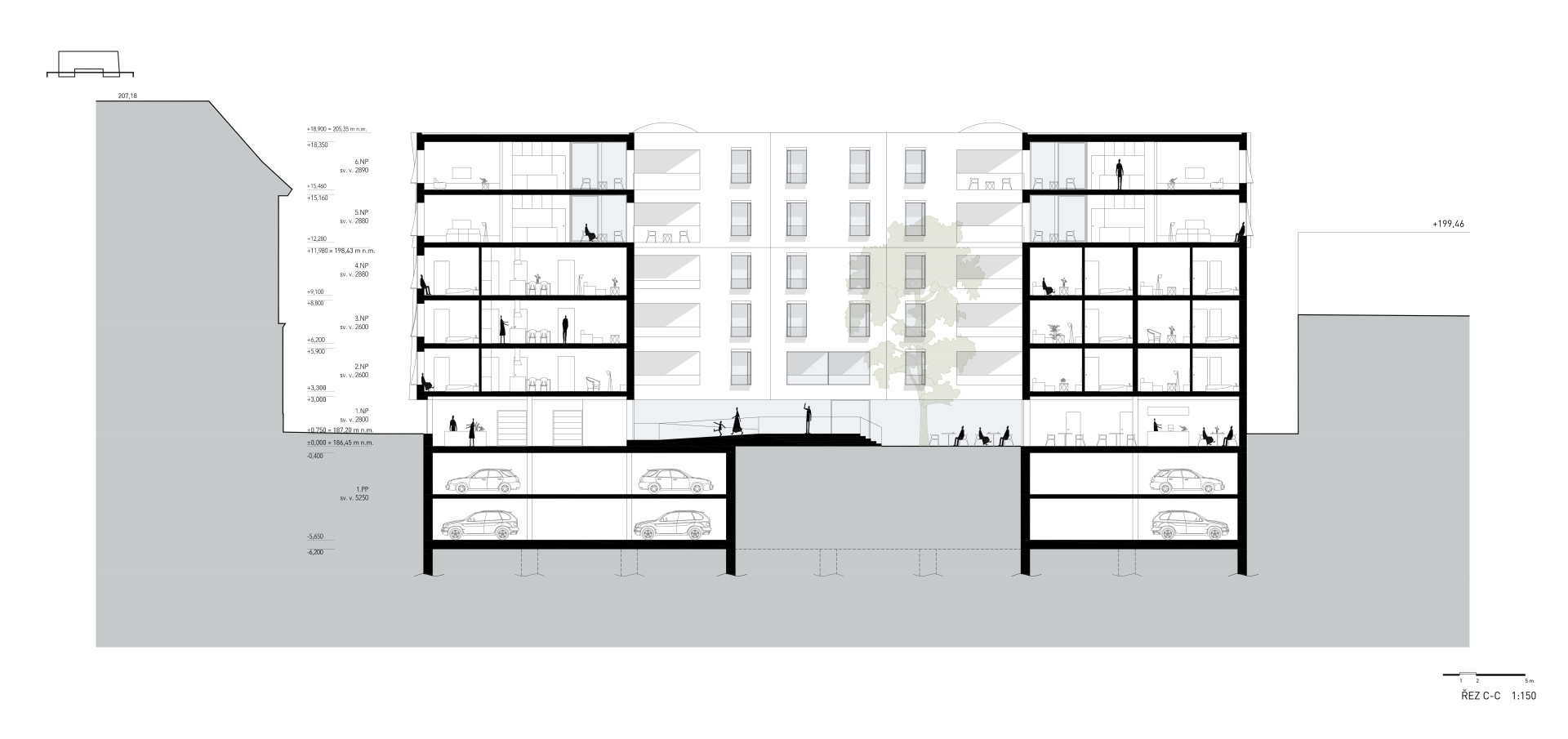 „Zdárnému výsledku a úspěšnému projednání v rámci stavebního řízení velmi pomohla změna podoby domu“ říká Jan Kukla, projektový manažer CREDITAS Real Estate. Společnost projekt od italského investora odkoupila v roce 2018 a rozhodla se uspořádat uzavřenou architektonickou soutěž, vyzvala k ní etablované architektonické kanceláře Chybik + Kristof, MS Architekti, QARTA Architektura, CMC Architects a v neposlední řadě i Fránek Architects.