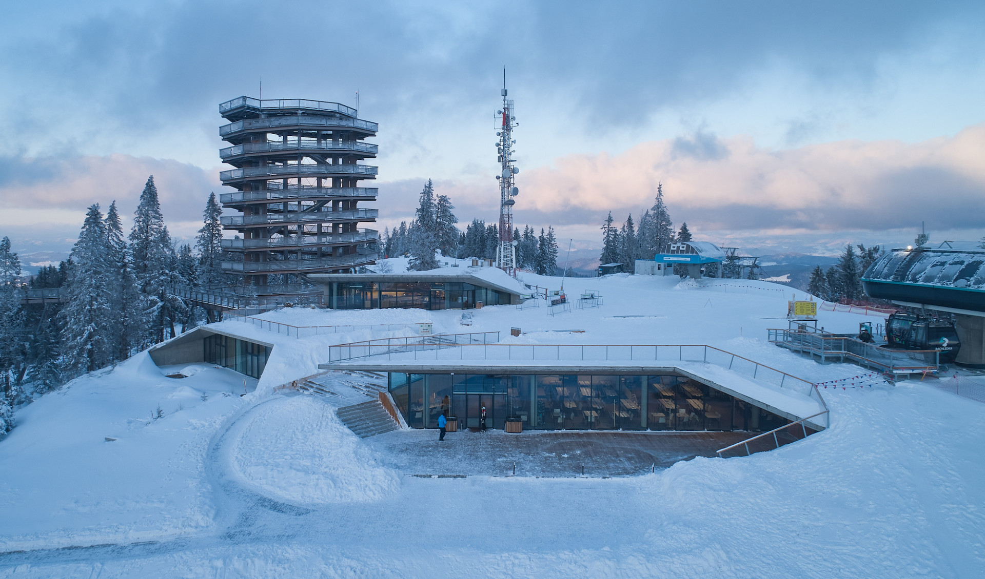 Vyhledávaný horský areál Bachledka Ski & Sun na vrcholu Malé Poľany navštíví denně až 6000 lidí. Z toho důvodu bylo na hoře potřeba vybudovat adekvátně velké zázemí pro celoroční provoz střediska, které kromě lyžování nabízí také cykloturistiku nebo stezku v korunách stromů. Aby ovšem nová stavba nad míru nenarušila přírodní charakter lokality, rozhodli se ji slovenští architekti z větší části zapustit přímo do terénu.