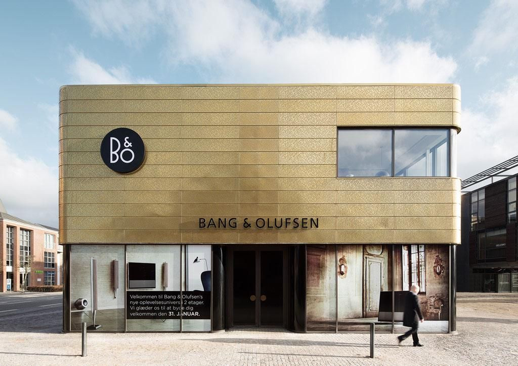 Za novým konceptem prodejen, který si klade za cíl přinést nový smyslový zážitek pomocí zvuku a designu, stojí tým v čele s Johannesem Torpè, kreativním ředitelem B&O. Arkitec A/S tento koncept architektonicky interpretoval do podoby obchodu v dánském městě Herning, tvořeného zdrženlivým boxem se zaoblenými hranami, připomínajícím minimalismus produktů B&O. Přestože je design obchodu veskrze moderní, citlivě respektuje svou zdrženlivostí a skromnými rozměry své umístění na centrálním náměstí města, kde dominuje kostel.