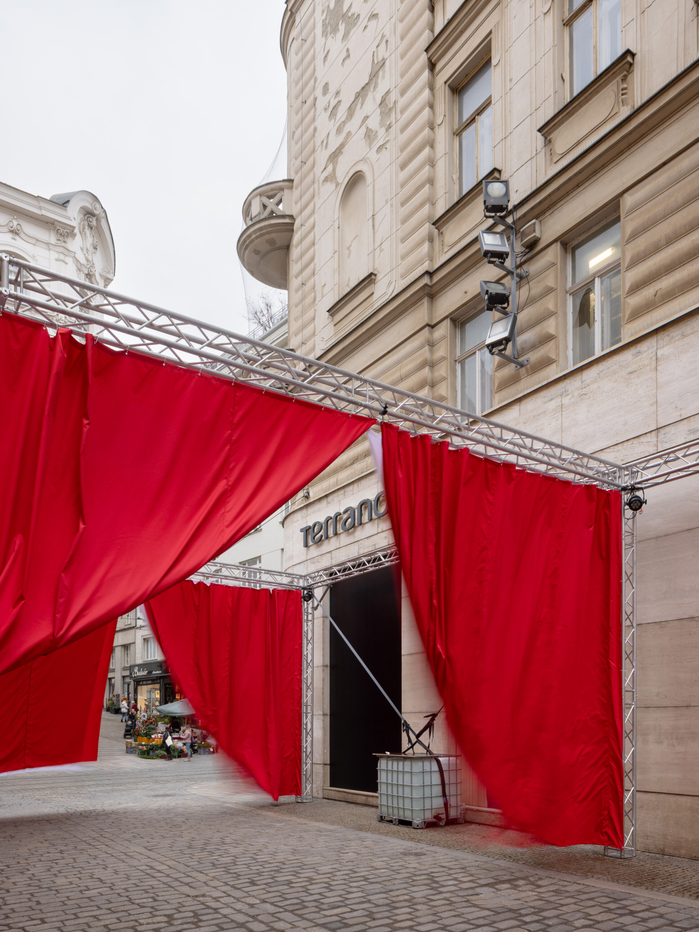 Vznikla prostorová instalace na Římském náměstí, což je ve skutečnosti značně zanedbaný plácek v samém centru města. „Chtěli jsme architekturu trhů úplně přehodnotit, udělat něco jiného než uličky mezi stánky, kde je spousta lidí,“ říká architekt Georgi Dimitriv z Peer Collective. Jejich konceptem jsou jakési pokojíky oddělené závěsy.