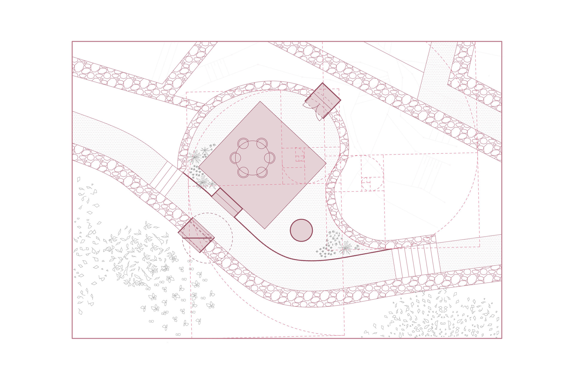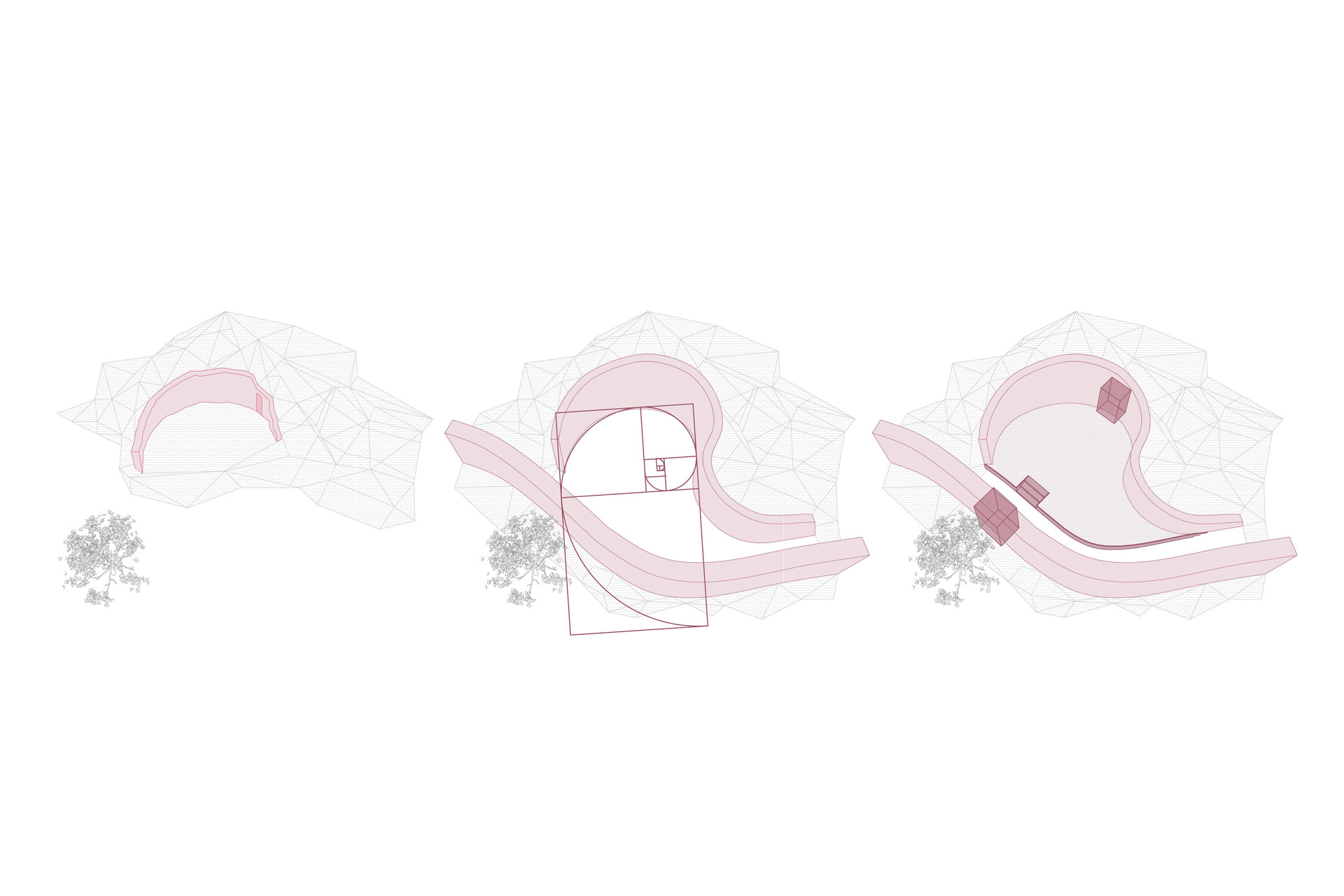 Autoři projekt pojmenovali Fibonacci, podle Fibonacciho spirály, což je útvar, který se dá vykreslit do struktury různě velkých čtverců zkonstruovaných podle takzvaných Fibonacciho čísel – matematické posloupnosti, která historicky lákala umělce, jelikož se na ní dá zkoumat princip zlatého řezu. Nový prostor ve vinohradu ovšem není pouze poetickým novotvarem, ale vyrostl na základech původní kamenné zdi, tu důsledně kopíruje.