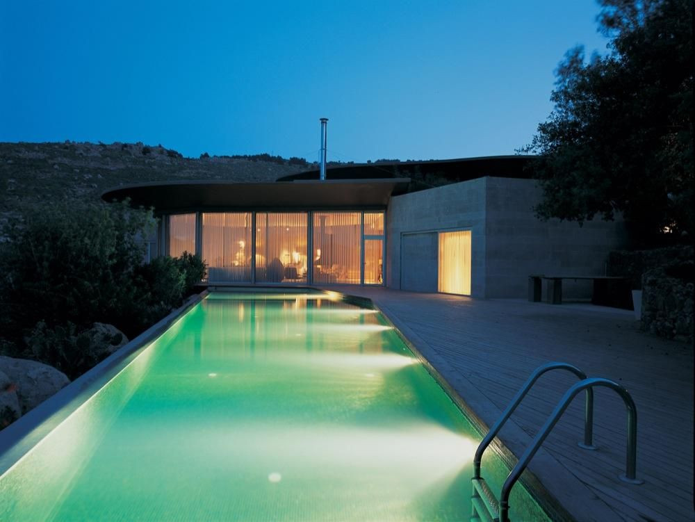 Centrální skleněný Vestibul plní funkci vstupu do budovy, stejně jako hlavního obývacího prostoru s 180 ° vyhlídkou na nádhernou krajinou a záliv, umožněnou okny od podlahy ke stropu. Elektronicky ovládaná okna mají schopnost otevřít se až k podlaze a tak umožňují mořskému vánku zaplavit interiér. Tento nejvnitřnější prostor je ústředním bodem domu a je napojen na tři další domy řadou betonových ramp, které spojují budovu s krajinou. Související svah, který může být využít pro opalování a další světelně rekreační aktivity, klesá směrem k bazenu, umístěnému na pozemku v nižší úrovni než je podlaha domu. Odtud vede rampa dolů s kopce k připojenému samostatnému bytového domu, který je zastazen do země a skrytý před horním domem.