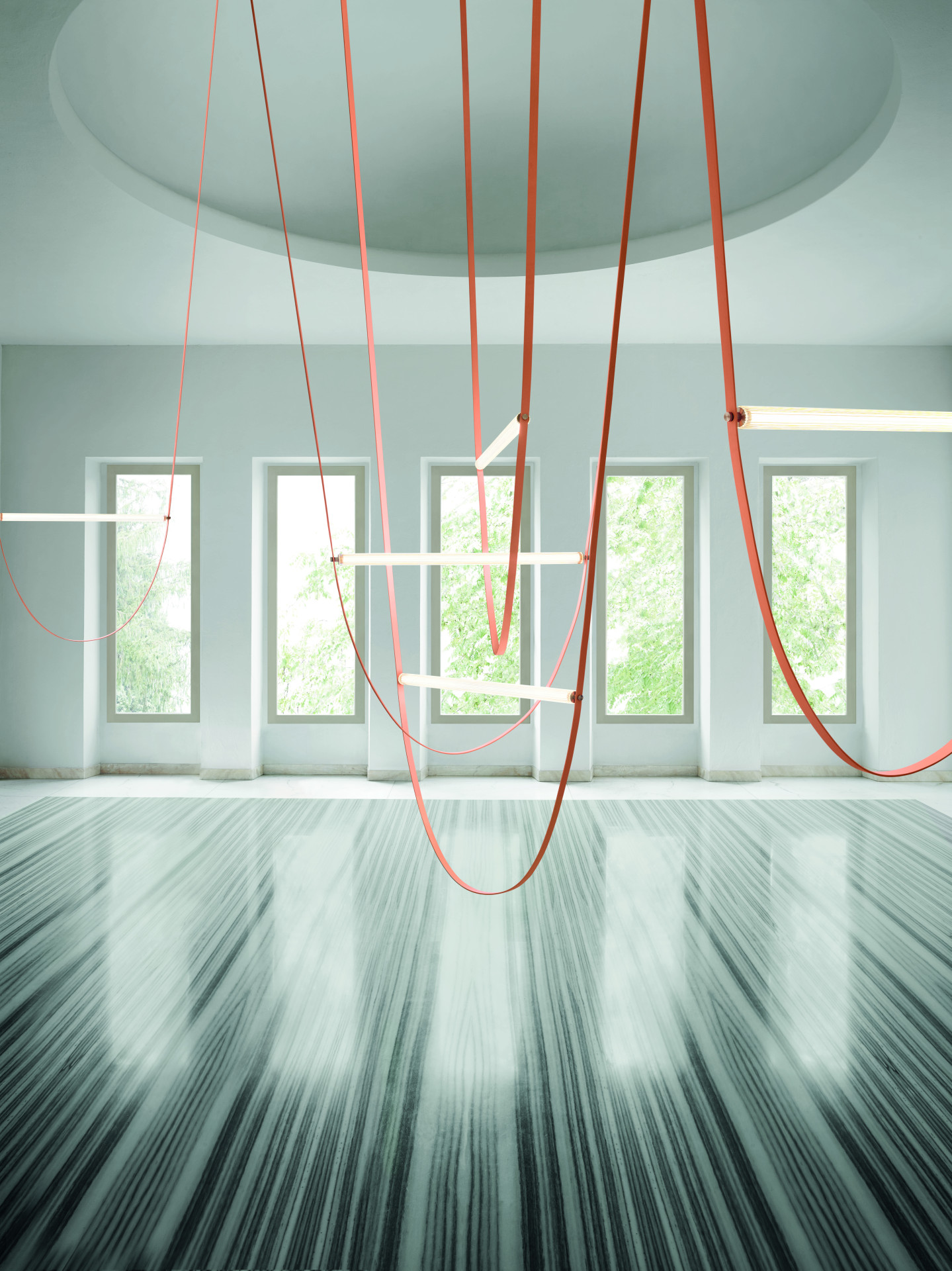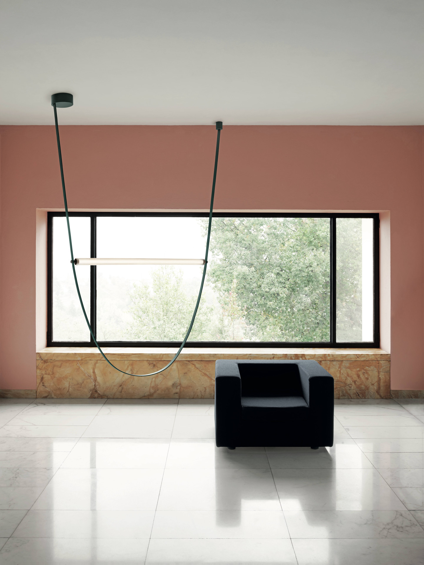 Atraktivní závěsné svítidlo Wireline od designerského dua Formafantasma (Andrea Trimarchi and Simone Farresin) je přesně tím, čím se zdá být. Připomíná houpačku nebo jen ležérně ze stropu visící kabely. Kolísá někde mezi uměním a průmyslovým designem. Spojuje v sobě design, společenskou odpovědnost i ekologii.