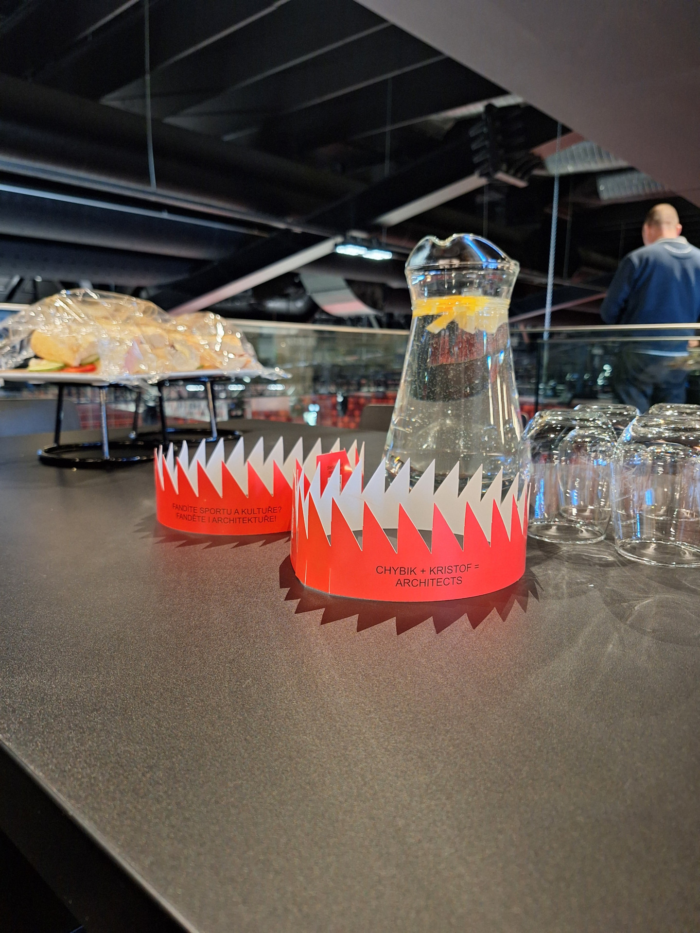 První dojem z arény máme příznivý. Ano, je výrazná – její červená barva je vidět průhledy mezi ulicemi, hmota ční do výšky – ale otravná a své okolí potírající není. Do města se zapisuje spíš skrze detail: svou korunou, tvořenou řetězem ostrých trojúhelníků. Evokovat může ježka – zvíře z jihlavského erbu i název místního piva – ale také lomené oblouky bohaté jihlavské gotiky.