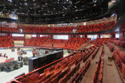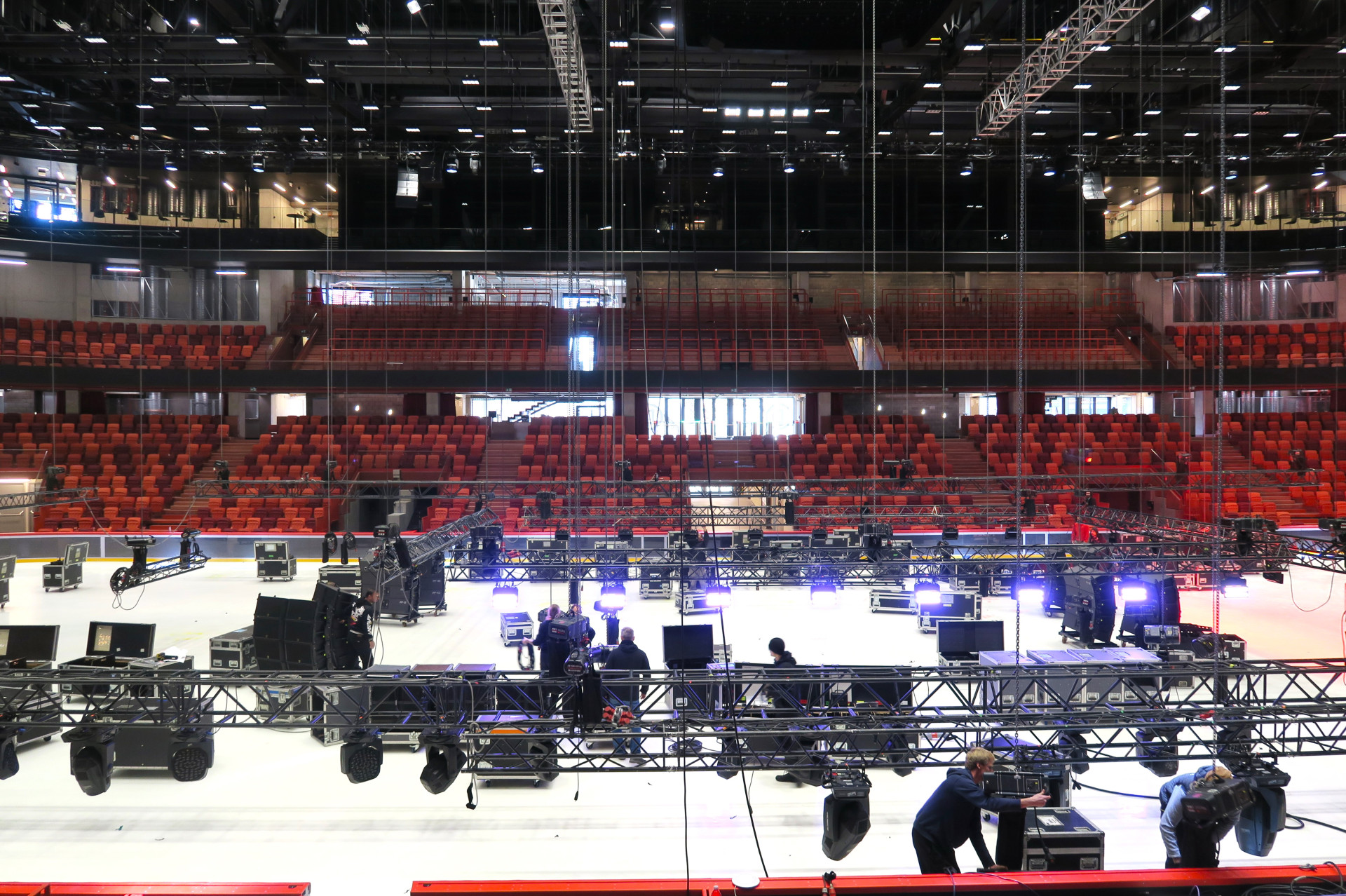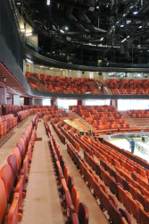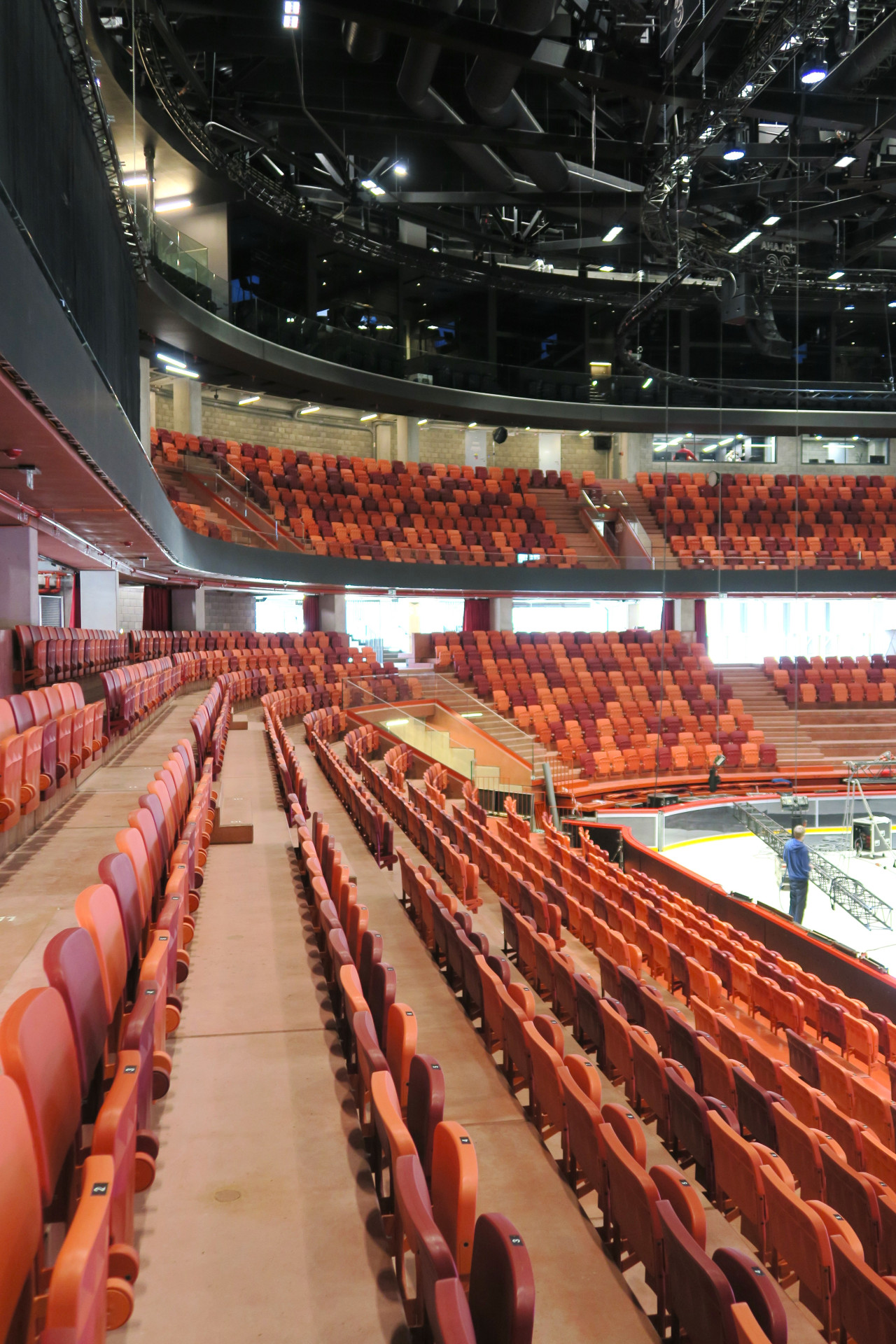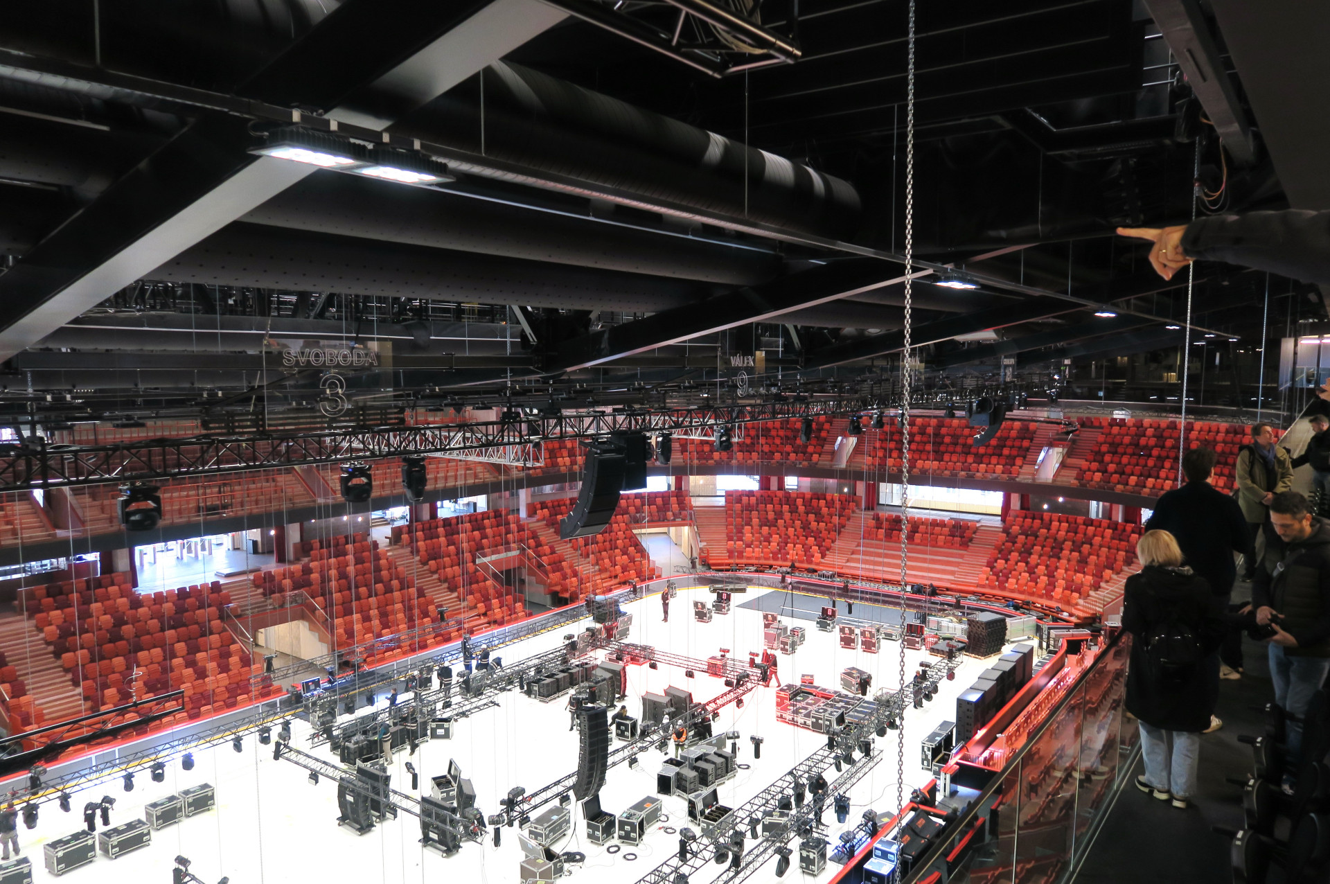 Pokud je diváků méně, neobsazené tribuny se zatáhnou černými závěsy a prostor se tím opticky zmenší. Je to praktické řešení, díky kterému aréna nebude při méně navštěvovaných akcích působit prázdně.