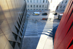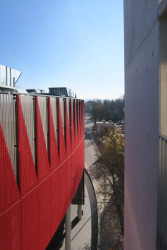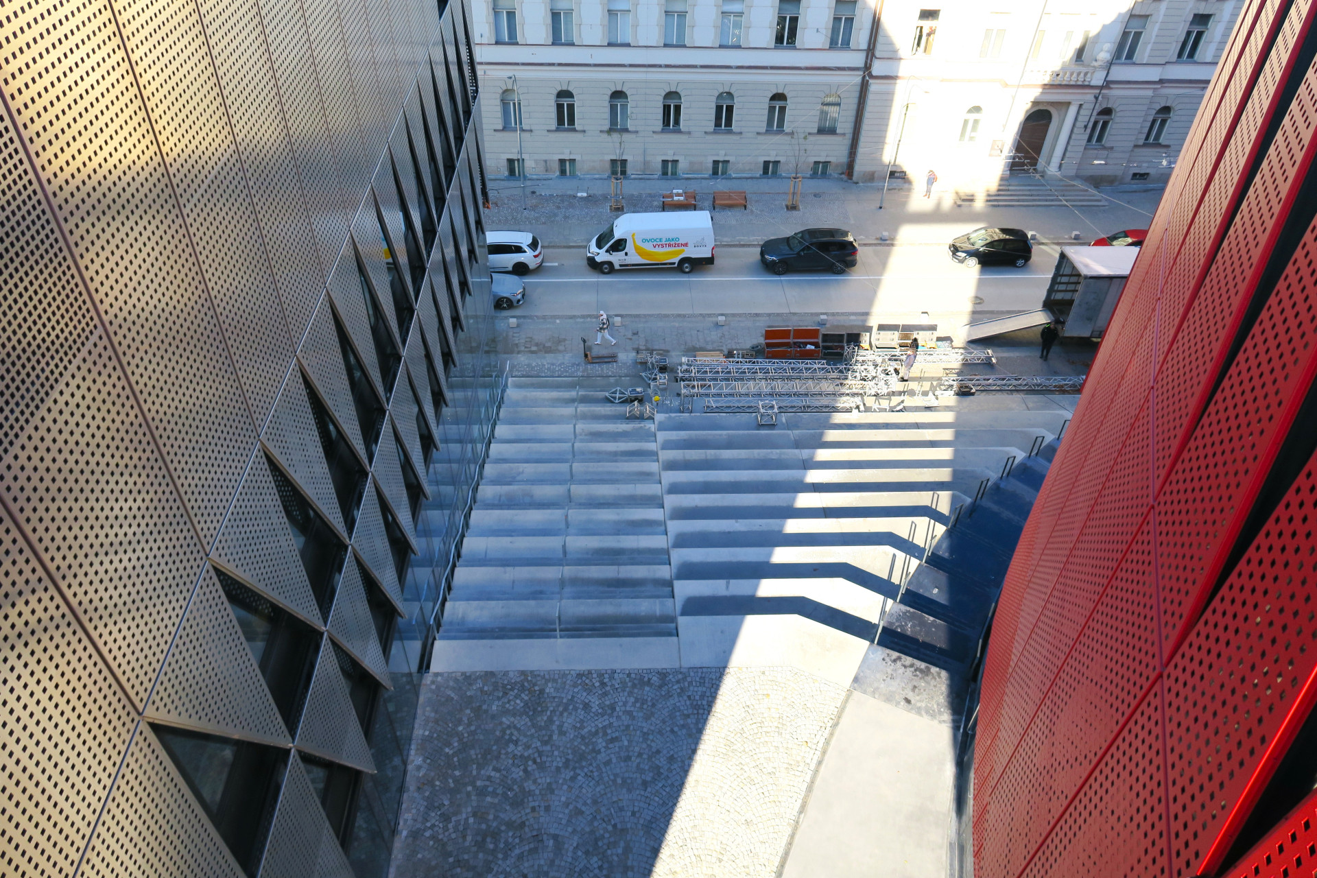 Našlápnuto je ale i k běžnému každodennímu využívání. Na střeše vznikla běžecká dráha s hřištěm, kam budou od jara moci chodit sportovat školy i jednotlivci. Ve věži u křižovatky už ve stejném režimu funguje tělocvična a brzy se přidá i posilovna. A dole v parteru je otevřená hospoda. Za hezkého počasí se u ní bude dát pít pivo i venku, na betonových schodech.