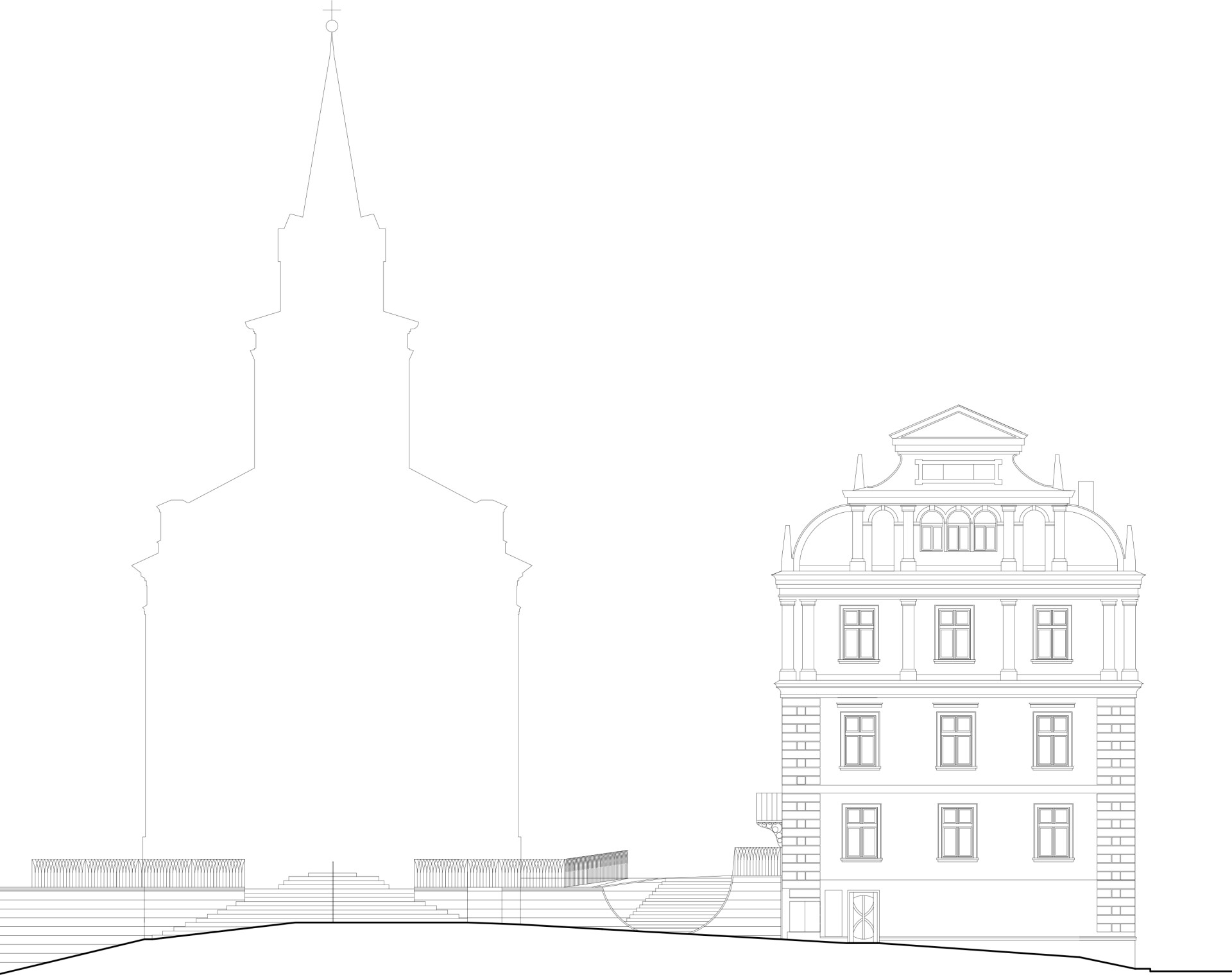Také při pohledu zvenčí je to počin. Nová přístavba se nenápadně, ale suverénně začlenila do svého historického okolí. Mezi školu a kostelem přibylo schodiště a bezbariérová rampa, vedle školy nová přístavba. Vše je současné, zároveň si nový objekt vypůjčuje barokní křivky a využívá zdejší tradiční materiál pískovec. Za to vše byla stavba nominována na cenu Klubu Za starou Prahu pro novou stavbu v historickém prostředí.