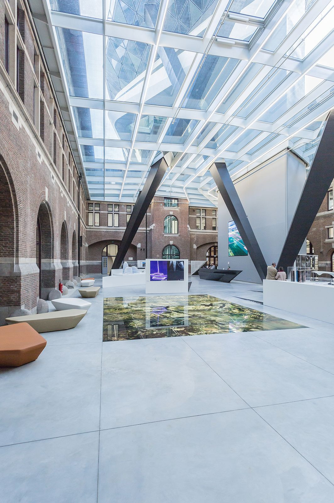 V obklopení vodou, prosklená fasáda nástavby vytváří dojem pohyblivých vln a reflektuje měnící se mraky a barvy na obloze. Výsledkem společné práce architektů, projektantů a techniků firmy Schüco je speciální konstrukce sestavená z trojhranných segmentů, která skrze ploché skleněné desky vytváří zdánlivě hladké křivky. Většina trojúhelníkových prvků je transparentní, některé neprůhledné. Jejich precizní kombinace zajišťuje dostatečný přísun denního světla do objektu bez přebytečného slunečního záření.