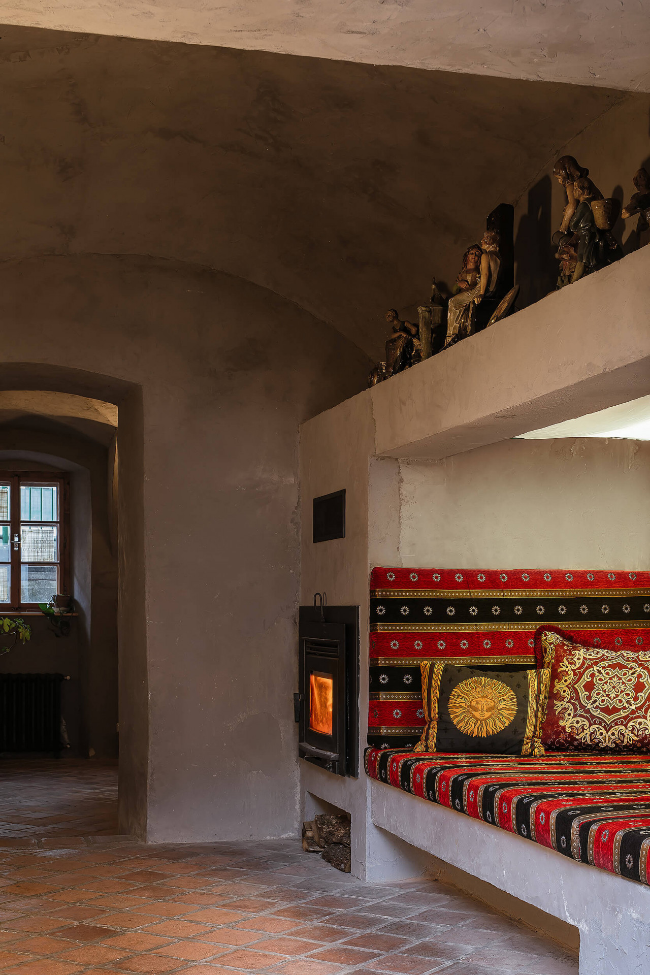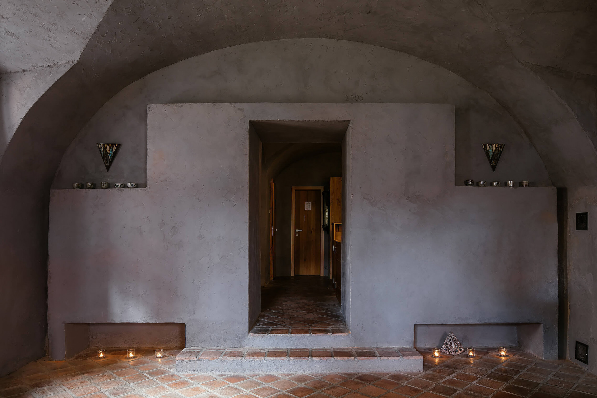 Atmosféra čajovny v Blatné vás pohltí na první pohled. Tlusté stěny barokního domu nově pokrývají probarvené štuky, podlahu zase tvoří cihlové půdovky. Vše nakonec doplňuje vestavný nábytek společně kousky z různých dob, které sbírá sám majitel domu. Prostor zkrátka dýchá přívětivou a až domáckou atmosférou. Svůj podíl na výsledku nepochybně nese přátelský vztah investora a architekta, kteří společně na projektu pracovali rovných 18 let.