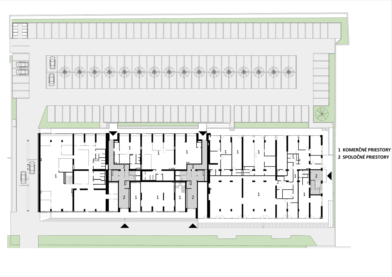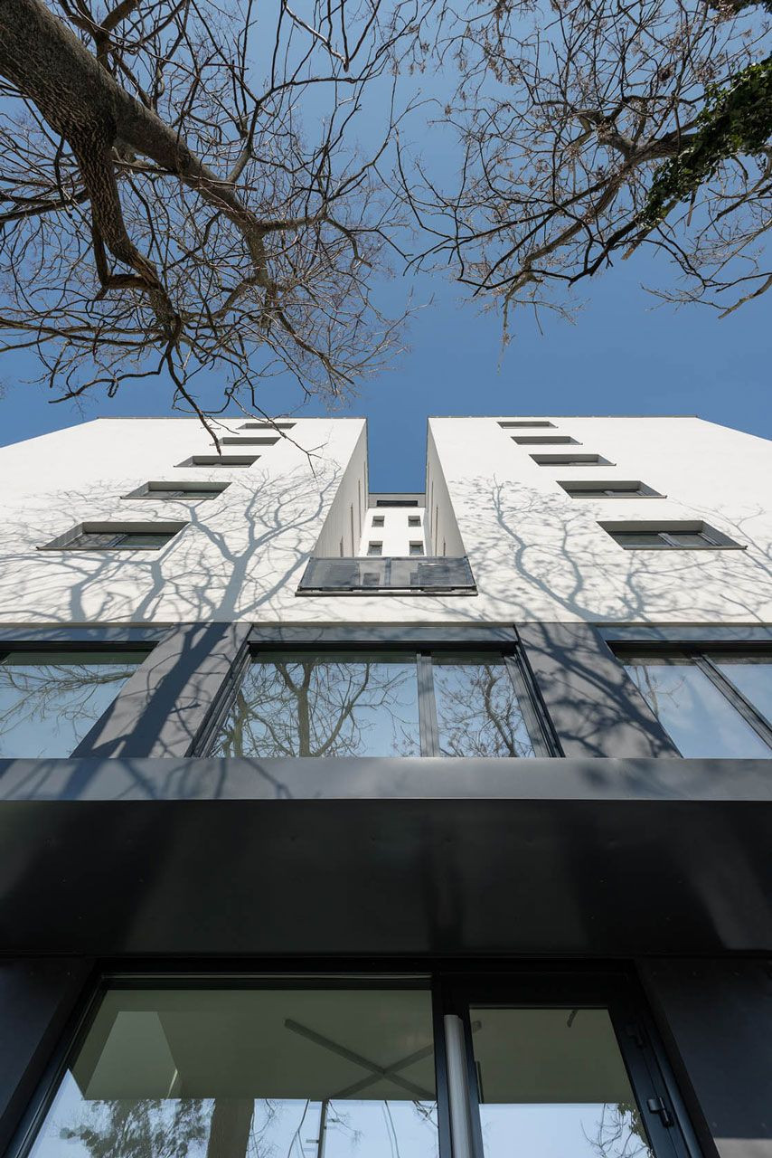 Hloubka dispozice, délka fasády i orientace budovy na Miletičově ulici v Bratislavě odpovídaly potřebám její původní funkce – administrativě. Přesto se studiu Compass Architekti podařilo díky vhodným prostředkům změnit využití domu pro nové účely, čímž je bydlení doplněné plochou pro komerci ve dvoupodlažním parteru.