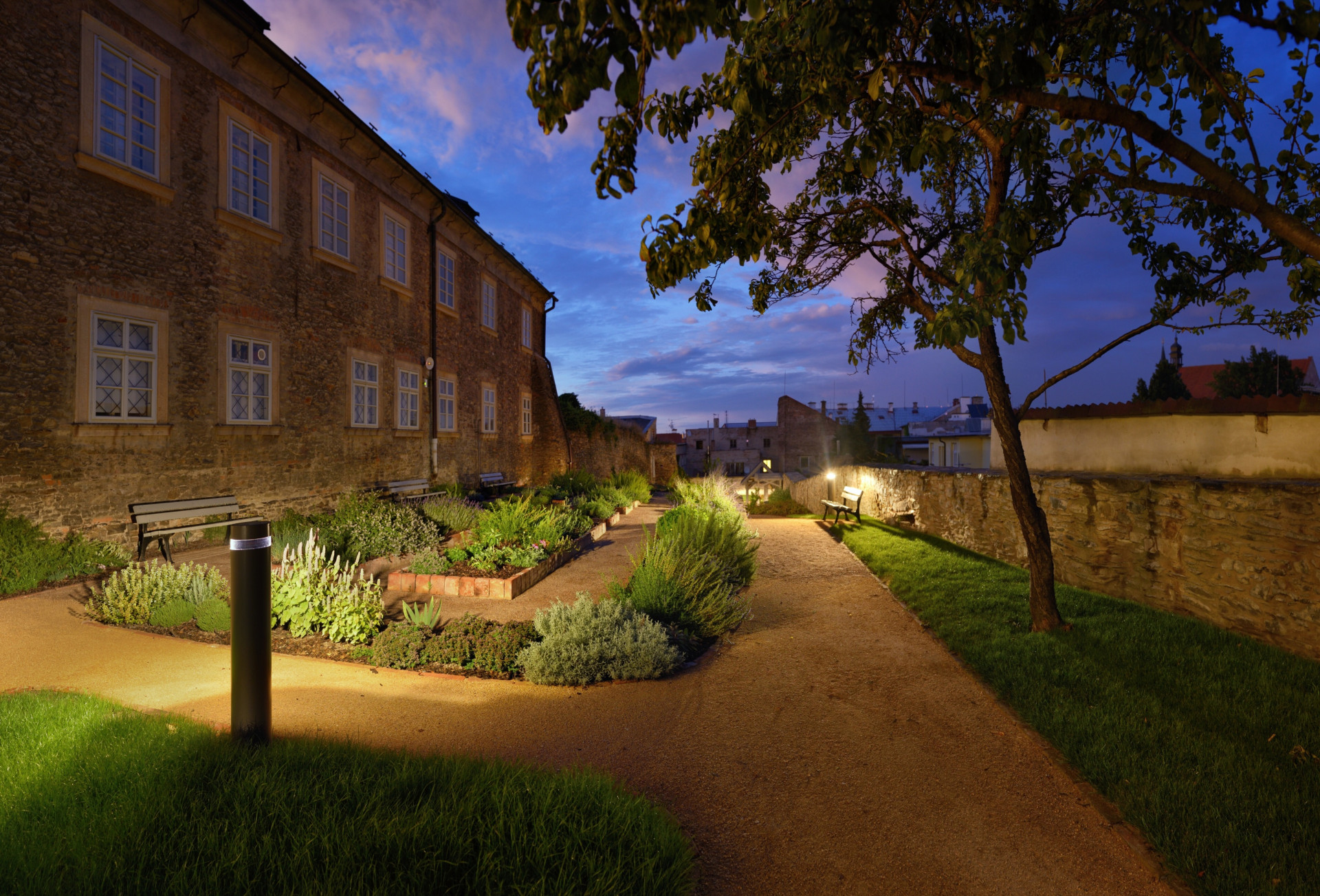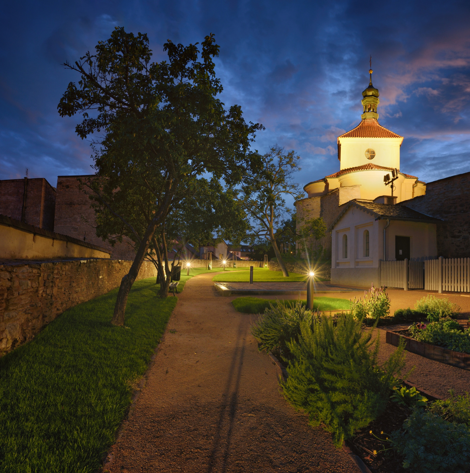 Na Bartolomějském návrší je dodnes k vidění řada středověkých památek. Vedle kostela, na jehož chóru pracoval dokonce architekt katedrály sv. Víta Petr Parléř, je to taky pás středověkého opevnění. Skládá se z vnějších a vnitřních hradeb, mezi nimiž je volná plocha – tzv. parkán. Farnost místo využívala jako zahradu, ucelenou koncepci ovšem dostala až v 19. století. Rostly tady byliny, víno, sad, vznikl altán a skleník. Do dneška se z toho nic nezachovalo, revitalizace se však k takovému obrazu chtěla přiblížit. V zahradě na parkánu tak opět vznikly záhony a přibyly stromy. Dá se okolo nich procházet po cestičkách a posadit se na lavičky, stal se tady z toho městský park.